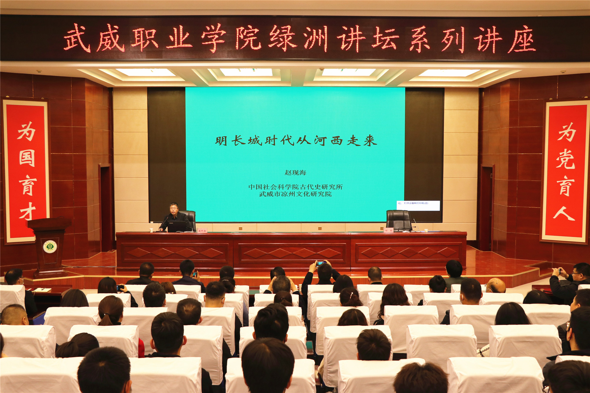 4月2日,學(xué)院綠洲講壇第40期開講,由中國社會科學(xué)院古代史研究所研究員,明史研究室主任,市涼州文化研究院副院長趙現(xiàn)海同志為師生進(jìn)行《明長城時代從河西走來》的專題報告。學(xué)院領(lǐng)導(dǎo)、涼州文化研究院相關(guān)領(lǐng)導(dǎo)和工作人員,西關(guān)科技巷社區(qū)領(lǐng)導(dǎo)和學(xué)院師生代表220人參加了報告會。黨委委員、副院長何毅主持報告會。