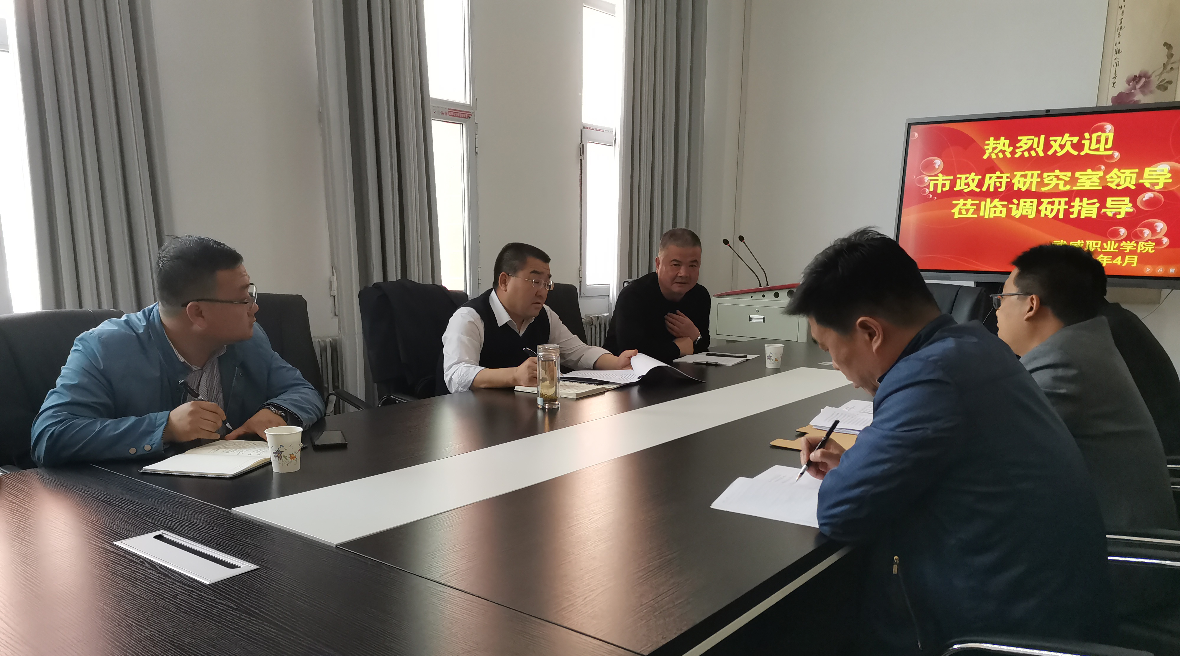 4月9日上午,武威市政府研究室副主任桑崇德帶領(lǐng)調(diào)研小組,來校調(diào)研學(xué)院與市域內(nèi)企業(yè)的校企合作、產(chǎn)教融合工作情況。調(diào)研主要以實地訪談方式進(jìn)行,學(xué)院黨委委員、副院長王守云陪同調(diào)研。