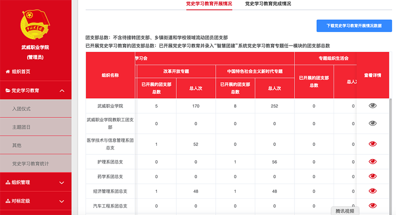 通過智慧團建黨史學習教育專區(qū),可以更好的實現(xiàn)對團組織、團干部、團員黨史學習教育情況的動態(tài)采集,構建全團大數(shù)據(jù)統(tǒng)計,及時掌握各級團組織和團員學習教育整體進度,有針對性地做好監(jiān)督,實現(xiàn)對團員團干部的網(wǎng)絡化黨史學習指導管理,實時掌握團員需求,創(chuàng)新活動載體,切實推動我院共青團黨史學習教育活動扎實開展。