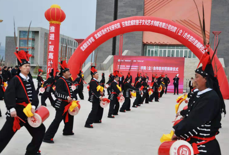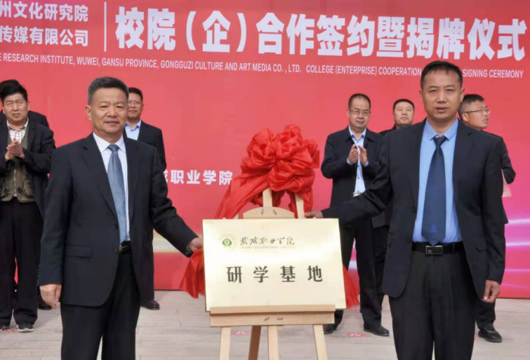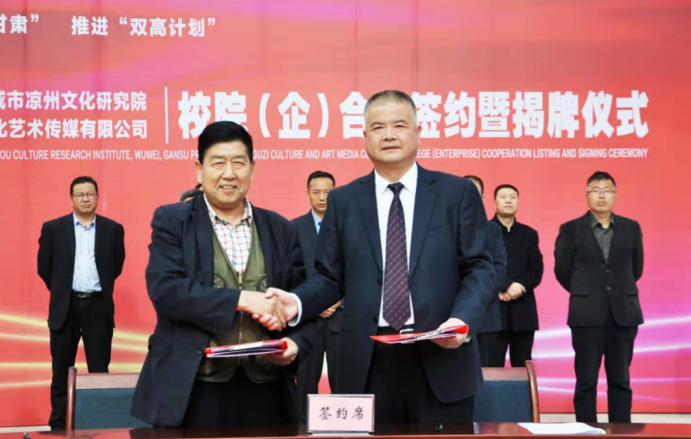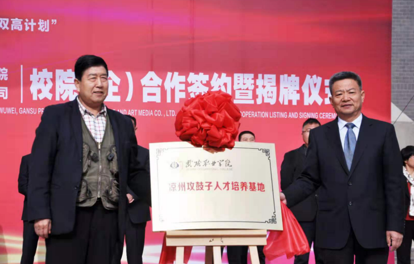 4月27日,學院與武威市涼州文化研究院、甘肅武威攻鼓子文化藝術(shù)傳媒有限公司“校(院)企戰(zhàn)略合作”簽約暨揭牌儀式在學院圖書館前廣場舉行。