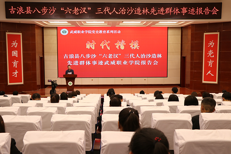 八步沙“六老漢”三代人治沙造林先進群體事跡報告團走進武威職業(yè)學(xué)院