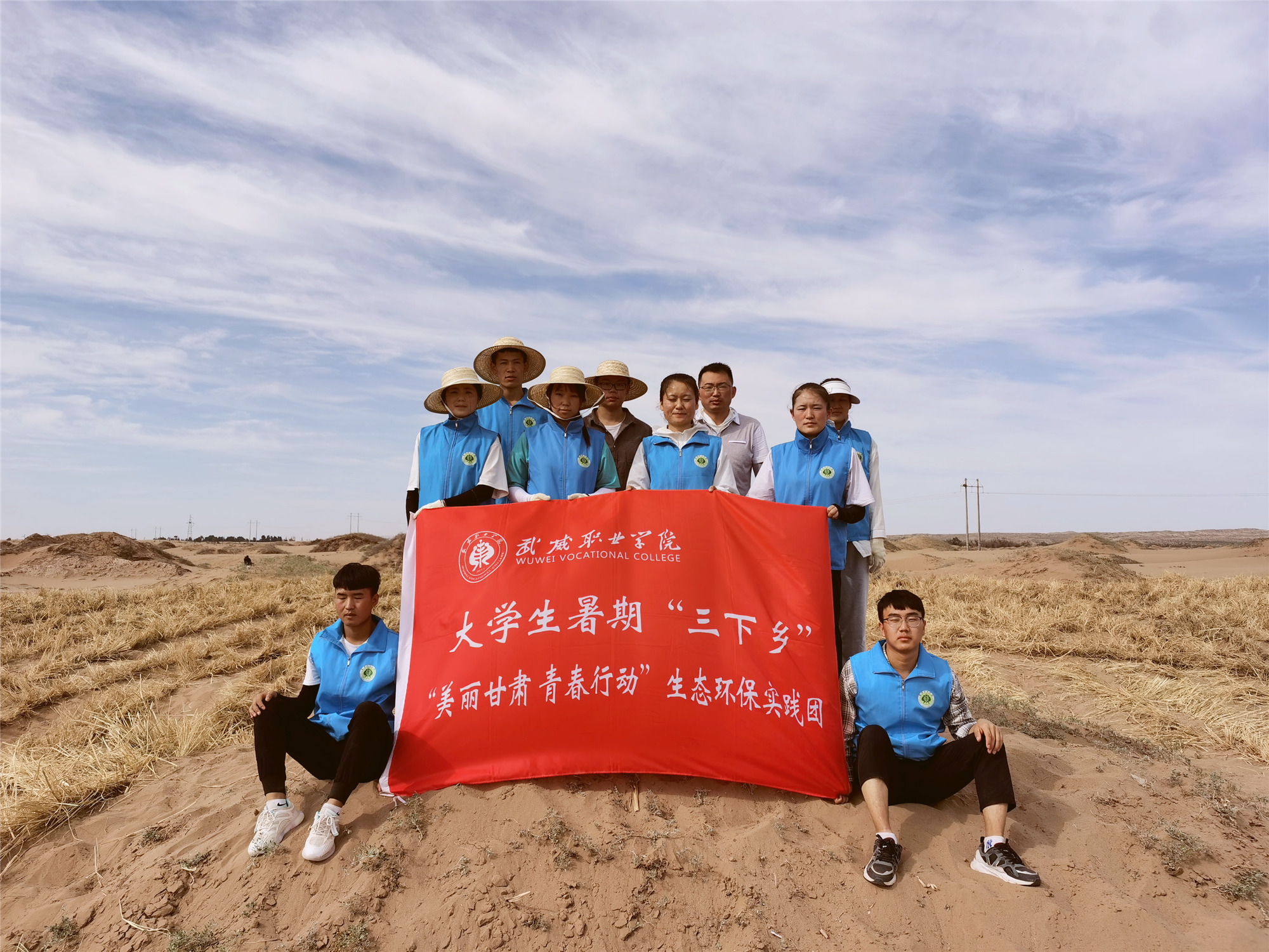 為深入學(xué)習(xí)貫徹習(xí)近平總書記生態(tài)文明建設(shè)重要戰(zhàn)略思想,引導(dǎo)和幫助學(xué)院青年學(xué)生積極融入武威市創(chuàng)建文明城市,以實(shí)際行動(dòng)致力于荒漠化治理、踐行兩山理論。2021年7月15日至21日,在武威職業(yè)學(xué)院團(tuán)委、教學(xué)院系指導(dǎo)下,來自7個(gè)專業(yè)、1名留學(xué)生所組成的“美麗甘肅 青春行動(dòng)”青少年生態(tài)環(huán)保行動(dòng)暑期社會(huì)實(shí)踐小隊(duì)奔赴武威市三縣一區(qū)部分地區(qū)進(jìn)行“綠色夢想·戈壁荒漠‘智’富行動(dòng)”暑期社會(huì)實(shí)踐。