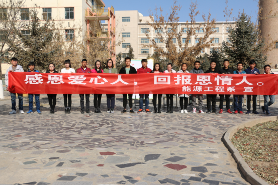 為了成長(zhǎng)為合格的祖國(guó)建設(shè)者,為實(shí)現(xiàn)中國(guó)夢(mèng)。2016年11月24日,武威職業(yè)學(xué)院能源工程系在一號(hào)食堂門口,舉行了以“感恩愛(ài)心人,回報(bào)恩情人”為主題的活動(dòng),出席本次活動(dòng)的有能源工程系全體學(xué)生會(huì)成員。