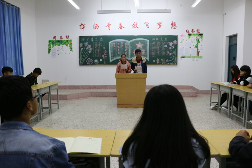 在這次主題活動(dòng)中,能源系各班積極參加,展示了別具一格的班級(jí)風(fēng)采,在本班團(tuán)支部書記的組織下,開展了豐富多彩的活動(dòng)。特別是16級(jí)光伏班,團(tuán)支部書記朱奇前致開幕詞: 80周年的今天,長(zhǎng)征途中那驚天動(dòng)地傳神的英雄壯舉,仿佛就在眼前那隆隆的炮聲。震天的吶喊,仿佛就在耳邊,成為我們成長(zhǎng)進(jìn)步的無窮動(dòng)力。接下來,各班召開了主題班會(huì)。以紀(jì)念紅軍長(zhǎng)征勝利80 周年,緬懷紅軍創(chuàng)建的豐功偉績(jī),追思和弘揚(yáng)長(zhǎng)征精神,爭(zhēng)做文明誠(chéng)信小公民。在這濃厚的氛圍中,我們被深深感動(dòng)著,他雖然離我們漸漸遙遠(yuǎn),但我們不能忘卻這段歷史。我們紀(jì)念紅軍長(zhǎng)征勝利,就是要重溫長(zhǎng)征精神,牢記長(zhǎng)征精神,弘揚(yáng)長(zhǎng)征精神。把長(zhǎng)征精神一代一代傳下去,讓長(zhǎng)征精神永放光芒。