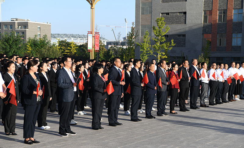 奮斗正當(dāng)時(shí),青春獻(xiàn)給黨!為慶祝新中國(guó)成立72周年,深入貫徹落實(shí)習(xí)近平總書記在慶祝建黨成立100周年大會(huì)上的重要講話精神,引導(dǎo)全院廣大青年大力弘揚(yáng)以愛國(guó)主義為核心的偉大民族精神,10月1日早上,學(xué)院在圖書館前廣場(chǎng)舉辦“請(qǐng)黨放心,強(qiáng)國(guó)有我”主題升國(guó)旗儀式。學(xué)院全體院領(lǐng)導(dǎo)、中層干部代表、師生代表300余人參加活動(dòng)。