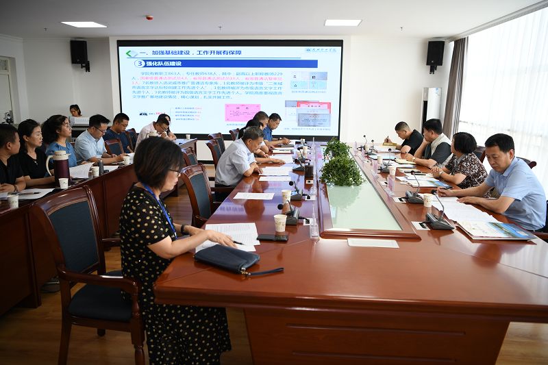 首先召開了“甘肅省語(yǔ)言文字推廣基地建設(shè)工作匯報(bào)會(huì)”,田迎春同志做了工作匯報(bào)。省語(yǔ)委專家聽取匯報(bào)、查看基地建設(shè)支撐資料,并就基地建設(shè)經(jīng)費(fèi)保障、推廣活動(dòng)的內(nèi)容及形式等方面提出問(wèn)題,學(xué)院相關(guān)負(fù)責(zé)同志作出詳細(xì)解答。匯報(bào)、提問(wèn)結(jié)束后,李晶同志對(duì)學(xué)院基地建設(shè)中取得的成績(jī)給予了肯定,同時(shí)也指出了建設(shè)過(guò)程中存在的問(wèn)題與不足。他強(qiáng)調(diào)在以后的工作中要充分利用學(xué)院師資力量,結(jié)合武威當(dāng)?shù)靥厣?,不斷?chuàng)新語(yǔ)言文字推廣工作的形式和內(nèi)容,形成品牌特色,將推廣工作從學(xué)院推向全市,為武威經(jīng)濟(jì)社會(huì)發(fā)展做出更多貢獻(xiàn)。趙明同志代表學(xué)院向省語(yǔ)委專家表達(dá)了對(duì)我院基地建設(shè)工作指導(dǎo)的感謝,并表示在今后作中我院將發(fā)揮優(yōu)勢(shì),彌補(bǔ)不足,進(jìn)一步加強(qiáng)基地建設(shè),在學(xué)院語(yǔ)言文字工作方民面取得新突破,引領(lǐng)當(dāng)?shù)卣Z(yǔ)言文字事業(yè)發(fā)展。