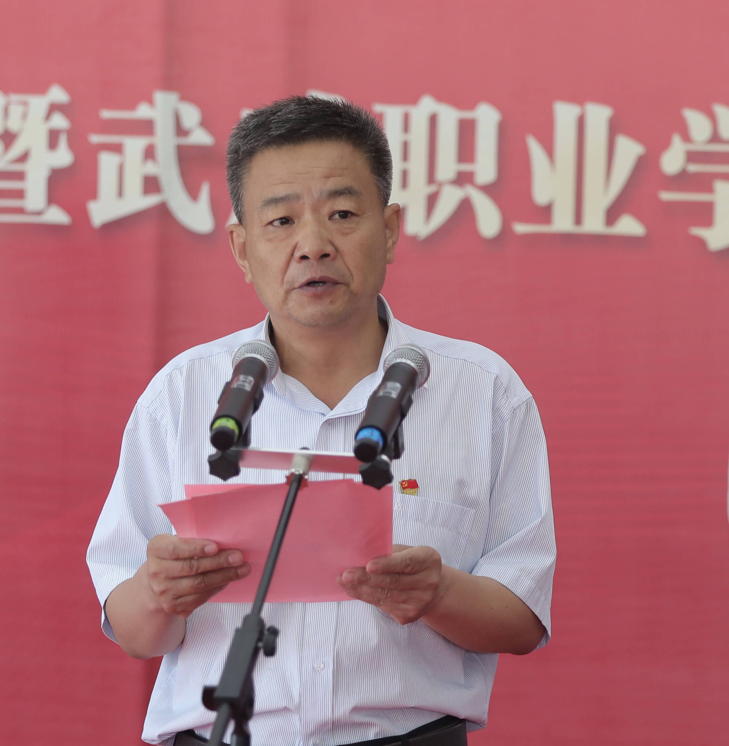學(xué)院客座教授、涼州區(qū)政協(xié)原副主席王大臣先生在致辭中表示,值此慶祝建黨100周年之際,共同見證武威職業(yè)學(xué)院紅色文化藝術(shù)館開館,心情非常激動(dòng)。武威職業(yè)學(xué)院是國(guó)家骨干高職院校,甘肅省優(yōu)質(zhì)校、“雙高計(jì)劃”建設(shè)院校,發(fā)揮著培育擔(dān)當(dāng)民族復(fù)興大任時(shí)代新人的作用。作為學(xué)院的客座教授,將自己“百年華章·紅色隴原——獻(xiàn)禮建黨一百周年書法展”的143副作品,毫無(wú)保留的全部捐贈(zèng)給學(xué)院,共建這個(gè)紅色文化藝術(shù)館,感到非常榮幸。全黨上下正在開展黨史學(xué)習(xí)教育,紅色文化藝術(shù)館的建立,正是武威職業(yè)學(xué)院賡續(xù)紅色血脈、繼承光榮傳統(tǒng),以紅色文化鑄魂育人的生動(dòng)體現(xiàn)。希望老師們、同學(xué)們,能夠通過(guò)這些作品感悟紅色精神、汲取奮進(jìn)力量,在新時(shí)代新征程中唱響“立德樹人”的贊歌。