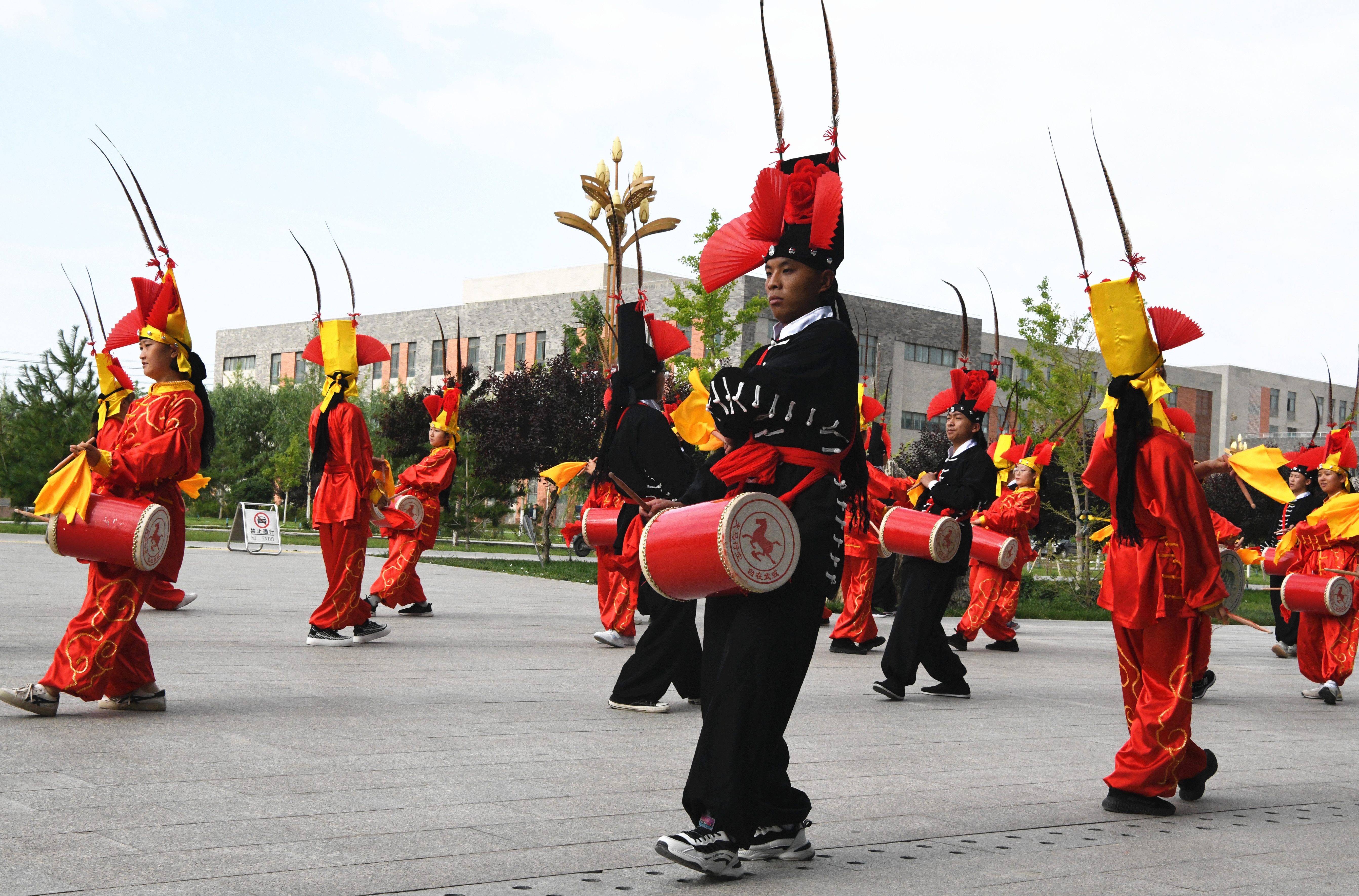 學(xué)院大學(xué)生攻鼓子藝術(shù)團(tuán)進(jìn)行了非物質(zhì)文化遺產(chǎn)——涼州攻鼓子表演。