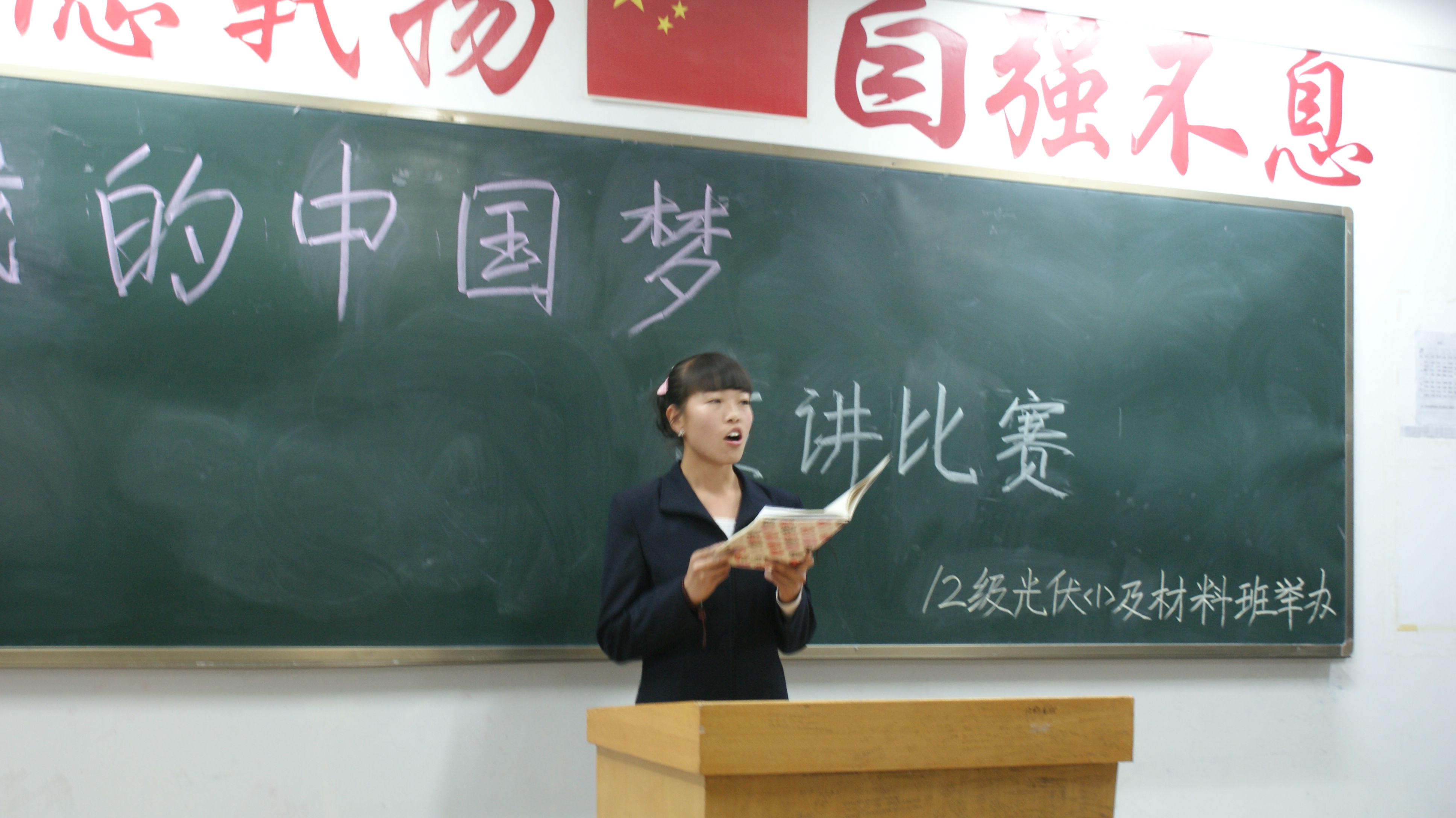 為積極引導(dǎo)同學(xué)們實現(xiàn)國家富強,民族復(fù)興,人民幸福的偉大中國夢而發(fā)奮工作學(xué)習(xí),能源工程系光伏發(fā)電技術(shù)及應(yīng)用一班及材料班在2013年4月10日在二號教學(xué)樓503教室舉辦了以《我的中國夢》為主題的演講比賽。