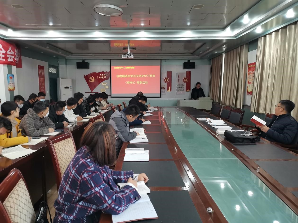為深入學(xué)習(xí)貫徹習(xí)近平新時(shí)代中國(guó)特色社會(huì)主義思想,充分發(fā)揮先進(jìn)典型示范引領(lǐng)作用,教育引導(dǎo)黨員師生學(xué)習(xí)榜樣、爭(zhēng)做榜樣,機(jī)械制造系黨總支于2021年12月9日下午在博學(xué)樓二樓會(huì)議室組織黨員師生觀看了《榜樣6》專題節(jié)目。