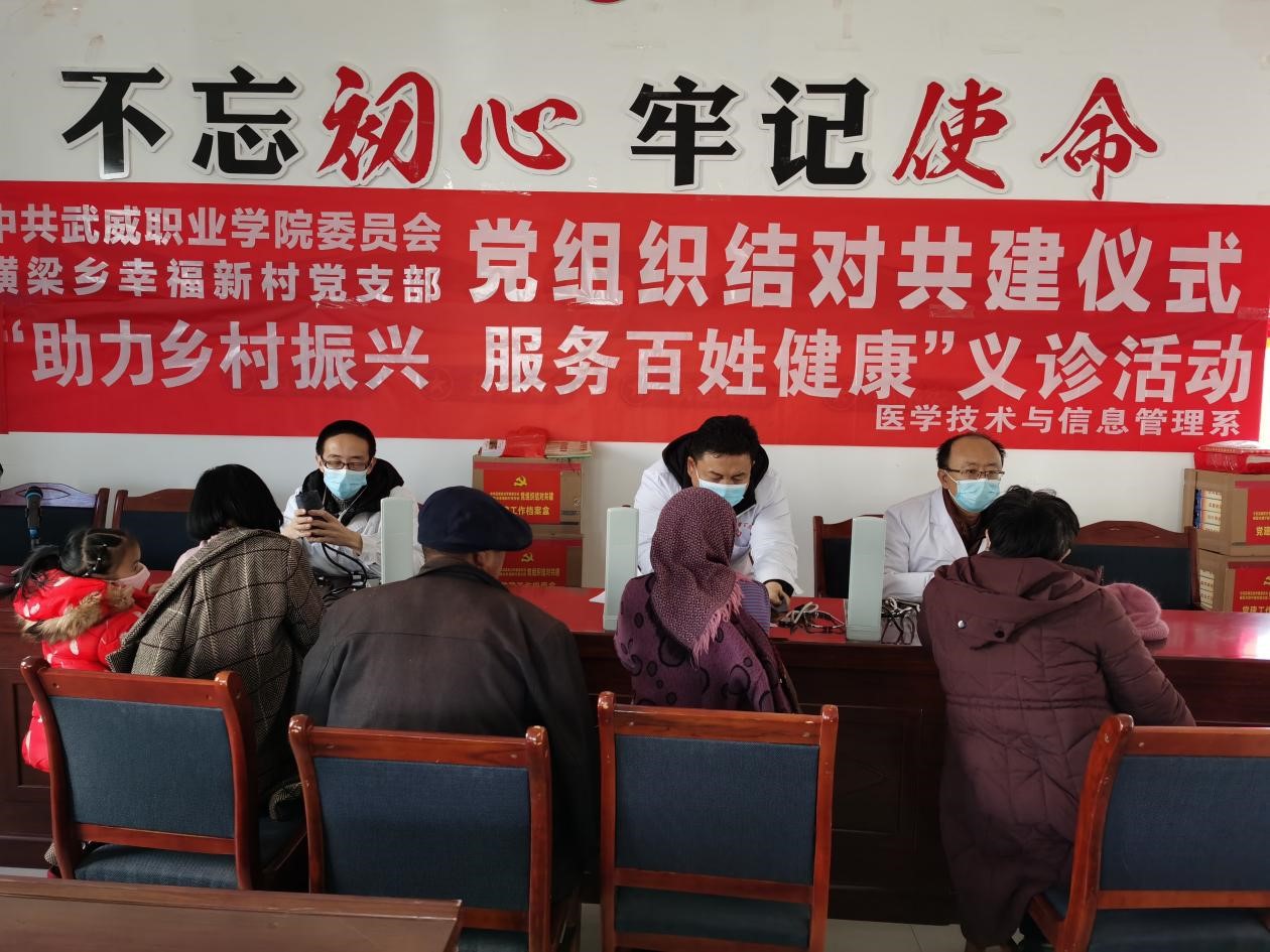 為深入學(xué)習(xí)宣傳貫徹黨的十九屆六中全會(huì)精神及武威市第五次黨代會(huì)精神,緊緊圍繞鄉(xiāng)村振興戰(zhàn)略全力落實(shí)健康扶貧等惠民政策,12月10日,醫(yī)學(xué)技術(shù)與信息管理系黨總支組織黨員和教師到古浪縣橫梁鄉(xiāng)幸福新村、康寧新村開(kāi)展“助力鄉(xiāng)村振興,服務(wù)百姓健康”義診活動(dòng)。