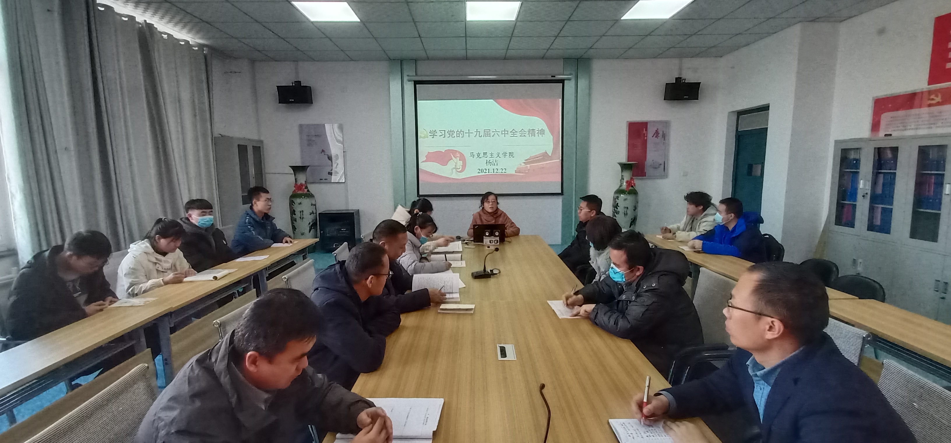 為深入學習貫徹落實黨的十九屆六中全會精神,12月22日下午,電子信息工程系邀請馬克思主義學院楊潔老師在明德樓409會議室進行黨的十九屆六中全會精神專題宣講,電子信息工程系全體教師和學生入黨積極分子參加了宣講。