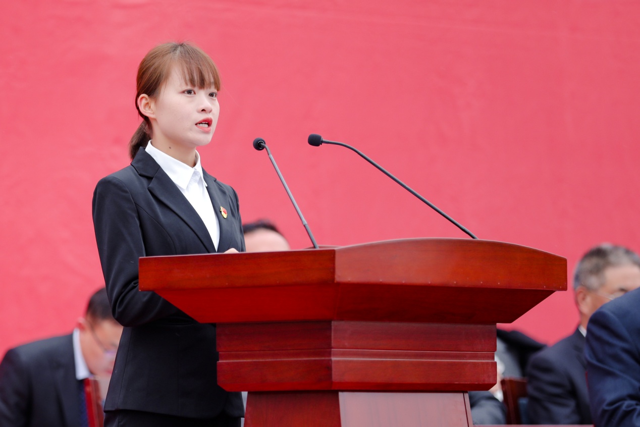 在校生代表,2019級(jí)藥學(xué)專業(yè)學(xué)生張婷婷以“舒展青春最好的模樣”為主題發(fā)言,她分享了自己在校期間的奮斗歷程,號(hào)召學(xué)弟學(xué)妹們以堅(jiān)定、樂觀的心態(tài),響應(yīng)時(shí)代號(hào)召,將個(gè)人理想、人生價(jià)值與國家需求緊密相連,學(xué)好專業(yè)知識(shí),練就過硬本領(lǐng),勇?lián)鷷r(shí)代賦予的使命。