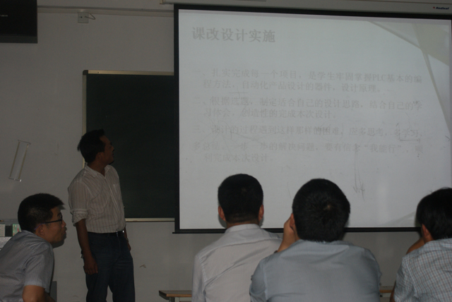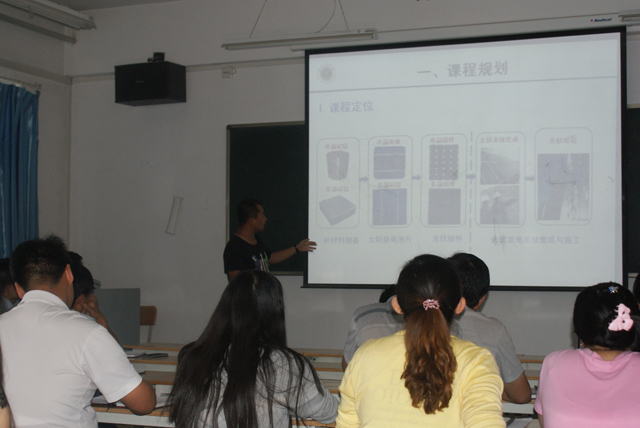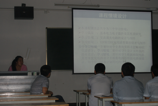 首先,上學(xué)期五位老師對(duì)課改完成情況進(jìn)行交流匯報(bào)。顏魯薪、何立國、張國祥、袁亞琳和張娟老師分別就上學(xué)期所帶課程《光伏材料制備與加工》、《光伏產(chǎn)品的生產(chǎn)與質(zhì)檢》、《電氣與PLC控制系統(tǒng)的運(yùn)行與維護(hù)》、《風(fēng)能與利用技術(shù)》及《電力電子技術(shù)》等五門課程從課程規(guī)劃、課程實(shí)施、成果展示、教學(xué)評(píng)價(jià)四個(gè)方面進(jìn)行了詳細(xì)的匯報(bào)。