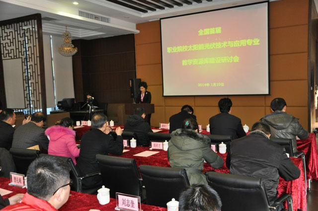 在研討會上,來自職業(yè)院校領(lǐng)導及光伏專業(yè)的專家教授分別對專業(yè)教學資源庫的建設(shè)提出了各自的意見及建議。中國職教學會校企合作工作委員會主任潘海生發(fā)表了重要講話。職教聯(lián)盟秘書長陳建民就聯(lián)盟2013年度工作進行了總結(jié),并對2014年度工作進行了規(guī)劃。無錫科技職業(yè)學院的曹建林教授就專業(yè)建設(shè)服務區(qū)域經(jīng)濟進行了深入淺出的分析。蘇州職業(yè)大學的曹豐文教授提出了對于教學資源庫建設(shè)目標與思路的意見與看法。無錫尚德公司副總裁朱景兵博士與在座的與會人士交流了怎樣對接企業(yè)培養(yǎng)技能人才的經(jīng)驗。