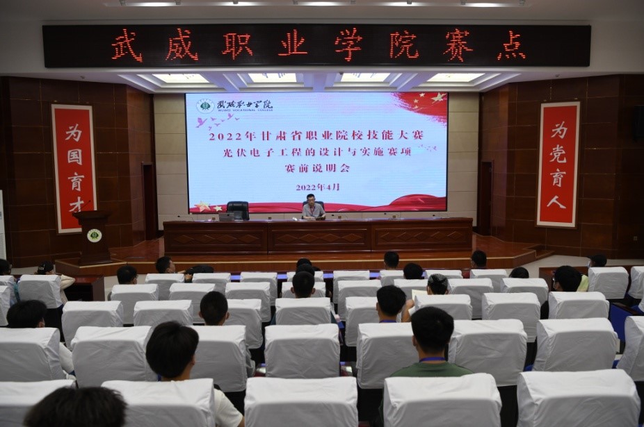 4月26日,2022年甘肅省職業(yè)院校技能大賽高職學(xué)生組“光伏電子工程的設(shè)計(jì)與實(shí)施賽項(xiàng)”成功在我校舉行。本次大賽由甘肅省教育廳、甘肅省人力資源和社會(huì)保障廳、甘肅省財(cái)政廳、甘肅省衛(wèi)生健康委員會(huì)、甘肅省總工會(huì)聯(lián)合主辦,武威職業(yè)學(xué)院是主要賽點(diǎn)之一,共承辦四個(gè)賽項(xiàng)。來(lái)自全省9所高職院校的15組共計(jì)45名選手參加了光伏電子工程的設(shè)計(jì)與實(shí)施賽項(xiàng),互相切磋技能,展示工匠風(fēng)采。