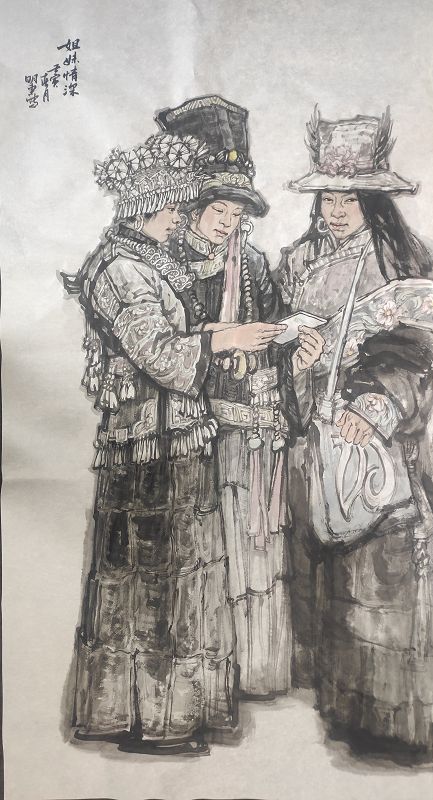 《姐妹情深》中國(guó)畫作品2022年入選武威市“石榴杯”民族團(tuán)結(jié)進(jìn)步書法美術(shù)攝影展