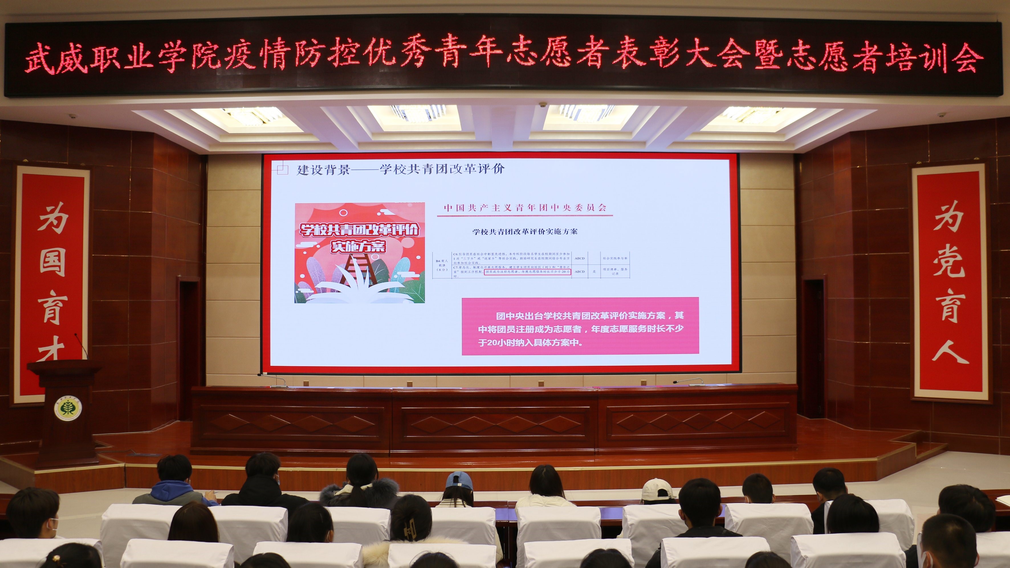 在表彰大會上,宣讀了《武威職業(yè)學(xué)院關(guān)于對疫情防控期間優(yōu)秀青年志愿者進行通報表揚的決定》,為疫情防控期間優(yōu)秀青年志愿者代表頒發(fā)了榮譽證書。