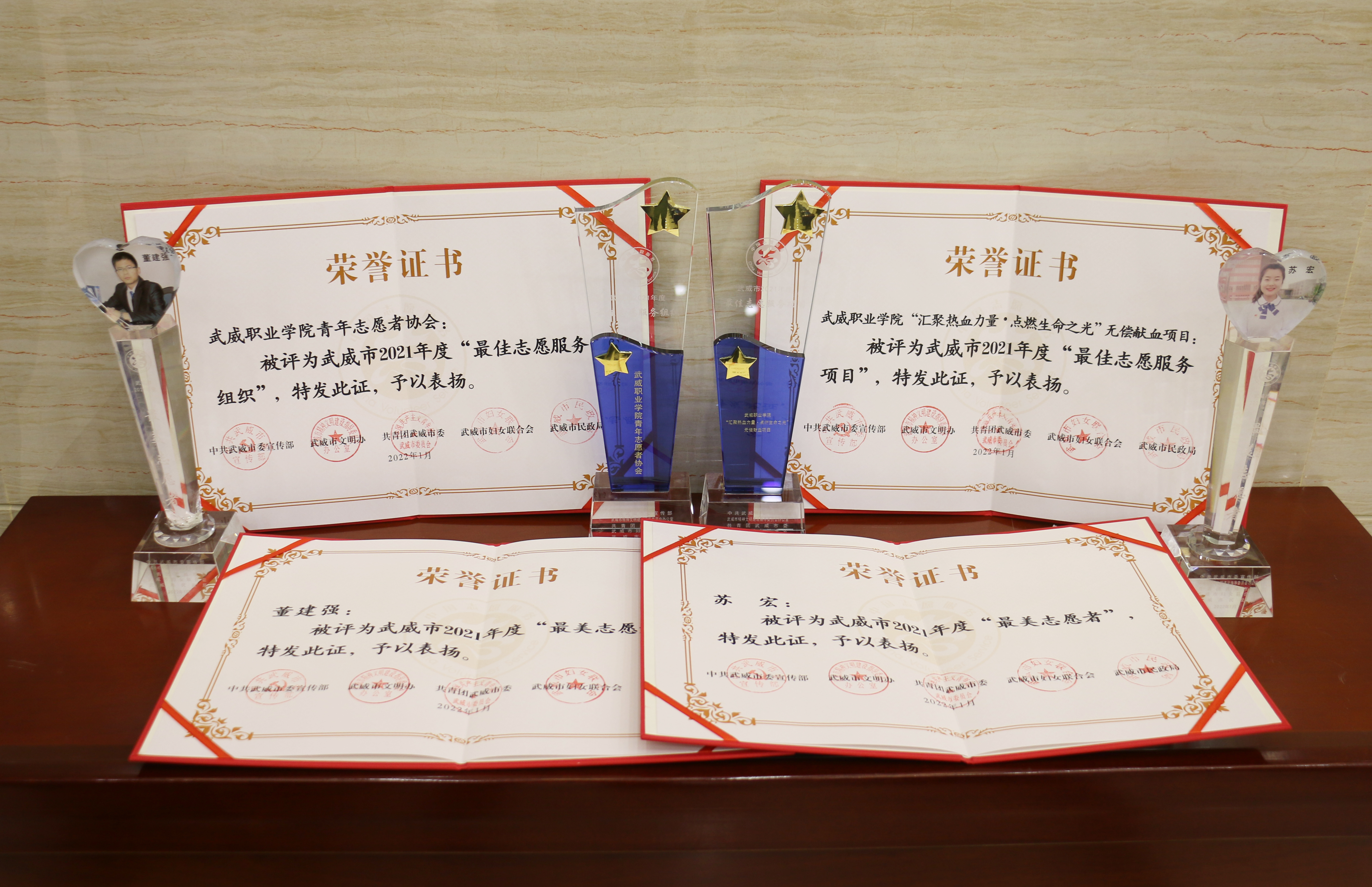 啟動儀式上,對獲得武威市2021年度“最美志愿者”“最佳志愿服務(wù)組織”“最佳志愿服務(wù)項目”“最美志愿服務(wù)社區(qū)”稱號的集體和個人頒發(fā)了證書和獎杯。我校青年志愿者協(xié)會獲得“最佳志愿服務(wù)組織”榮譽稱號,“匯聚熱血力量·點燃生命之光”無償獻血志愿服務(wù)項目獲得“最佳志愿服務(wù)項目”榮譽稱號,兩名師生獲得“最美志愿者”榮譽稱號。