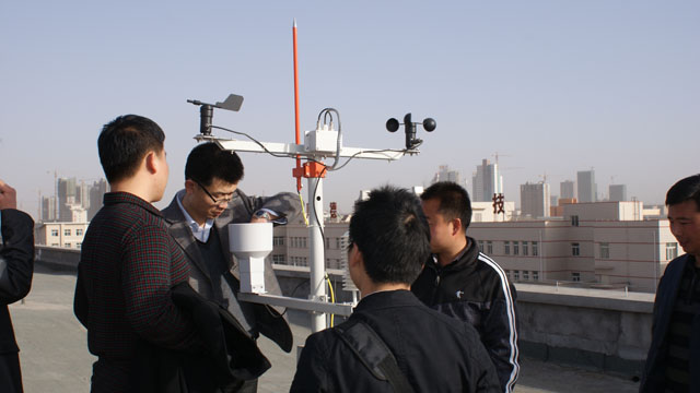 本次培訓(xùn)旨在提高教師對新進實驗設(shè)備的熟悉程度,解答實驗過程存在的問題。設(shè)備廠家北京中鼎科技有限公司的技術(shù)人員為各位參加培訓(xùn)的老師進行了講解和介紹。此次新進的實驗設(shè)施包括太陽能光伏發(fā)電應(yīng)用平臺、太陽能光熱集熱器、氣象監(jiān)控站、太陽輻射能測量平臺、集熱管性能檢測平臺等專業(yè)相關(guān)的實驗設(shè)備。廠家的技術(shù)人員演示了太陽能光伏發(fā)電設(shè)備在太陽能蓄電池、太陽能離網(wǎng)并網(wǎng)發(fā)電方面的應(yīng)用,并展示了氣象監(jiān)控站實時監(jiān)控的氣象數(shù)據(jù)。老師們在技術(shù)人員的帶領(lǐng)下來到了氣象監(jiān)控設(shè)備及太陽能輻射能測量設(shè)備安放的平臺,近距離的觀察了監(jiān)控設(shè)備的安裝和運行,并詢問了監(jiān)控設(shè)備的使用和維護的注意事項。