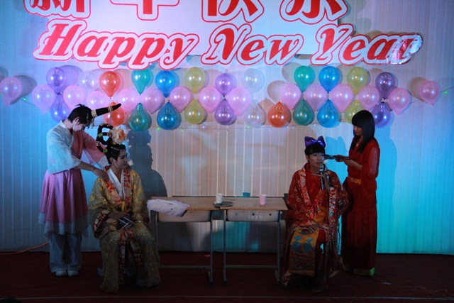 我系趙磊老師的薩克斯獨(dú)奏節(jié)奏明朗,富有磁力,優(yōu)美的旋律深深地吸引了全體觀眾。12級(jí)光熱班的張新輝,張一凡等同學(xué)反串《甄嬛傳》令現(xiàn)場(chǎng)的觀眾捧腹大笑。一首《祝?!返睦收b牽掛了所有觀眾,武術(shù)《中國(guó)功夫》令得全場(chǎng)驚呼,舞蹈《江南style》的精彩演出吸引了所有人的眼球。最后晚會(huì)在《同一首歌》的大合唱中緩緩落幕。