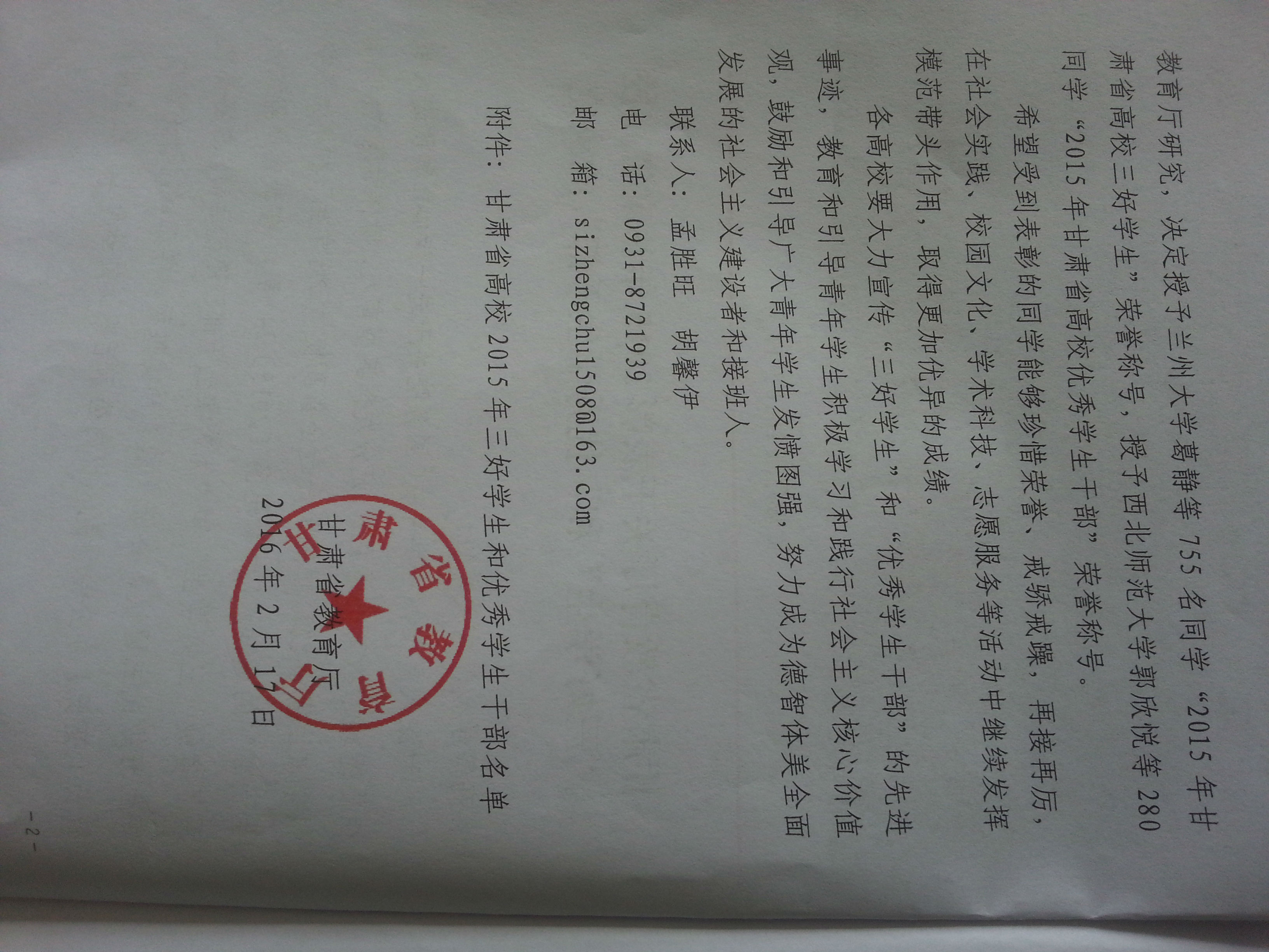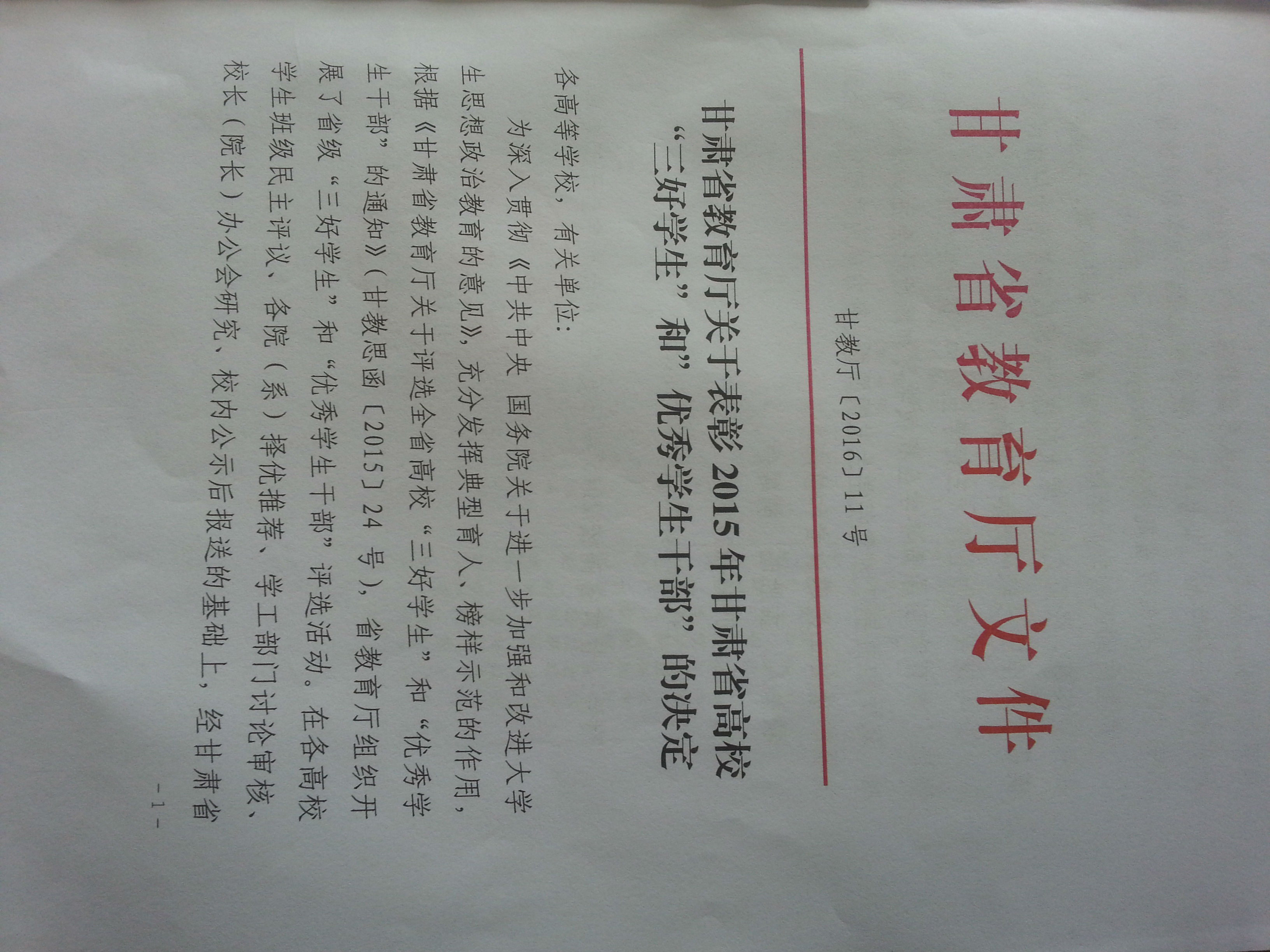 甘肅省教育廳關(guān)于表彰2015年甘肅省高校“三好學(xué)生”和“優(yōu)秀學(xué)生干部”的決定