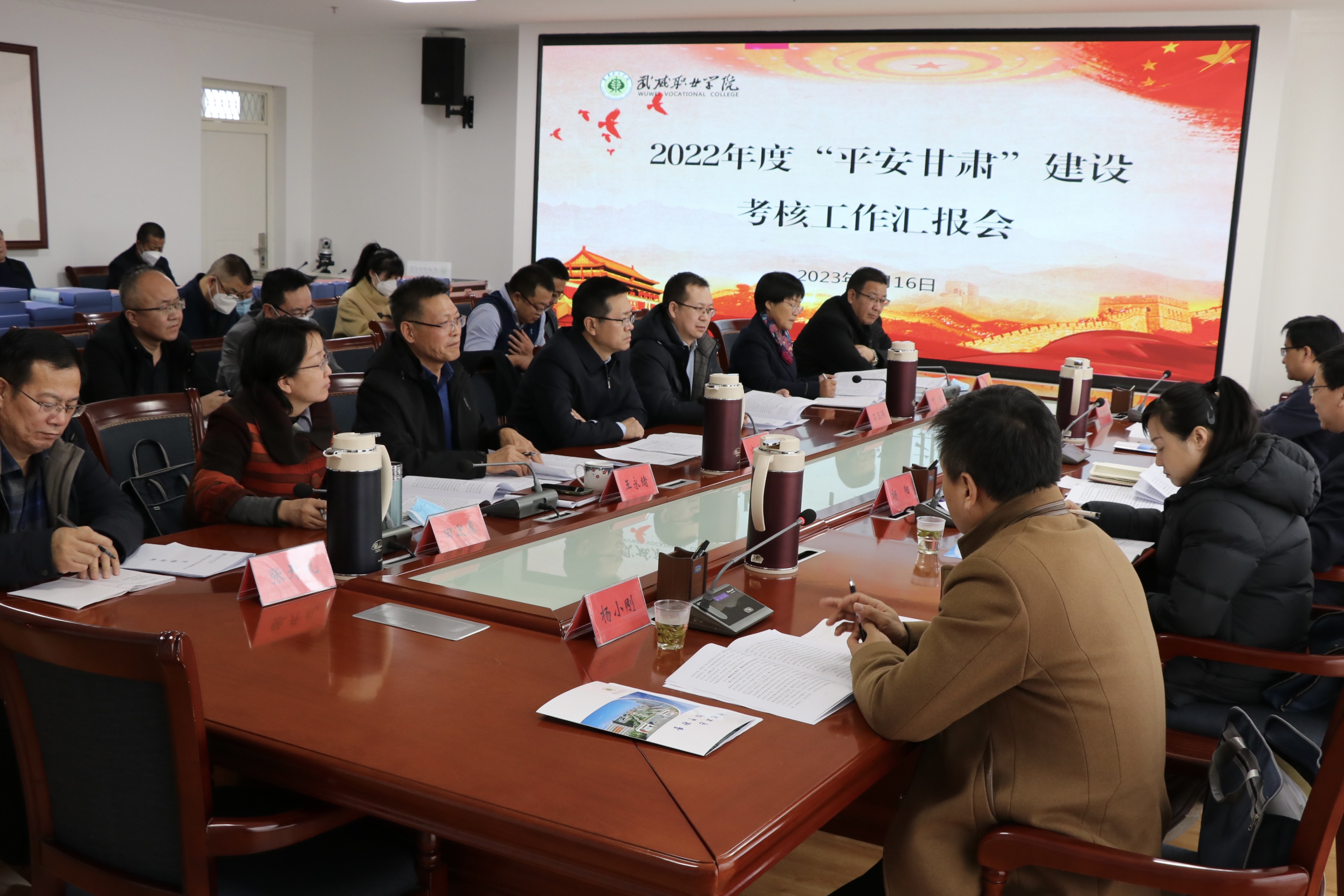2月16日下午,平安甘肅建設第七考評組組長、省信訪局副局長劉全生帶領考評組一行來學校,檢查考核學校2022年度平安建設工作。學校黨委委員、副校長王永緒主持會議,武威市市委政法委副書記寧生剛、在家校領導班子成員,各部門、二級學院負責人參加匯報會。