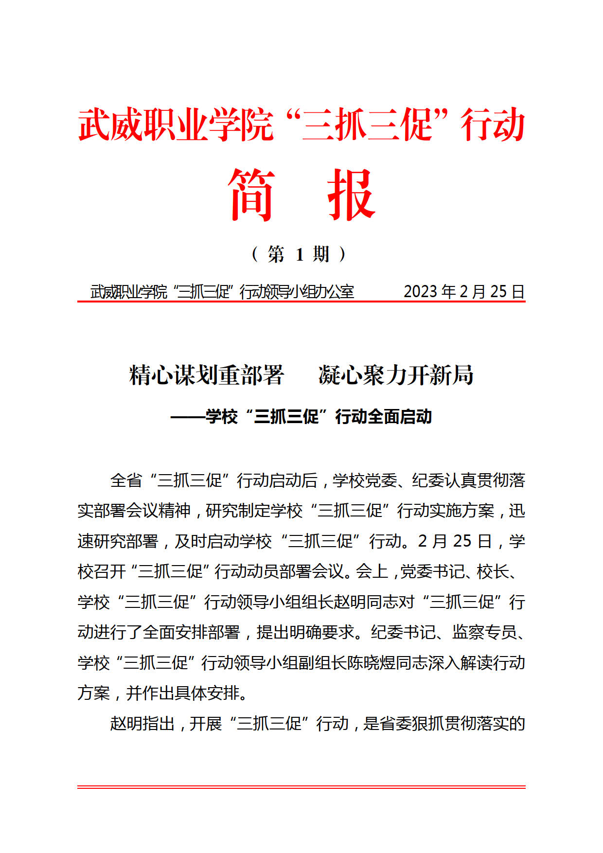 武威職業(yè)學(xué)院“三抓三促”行動簡報第1期
