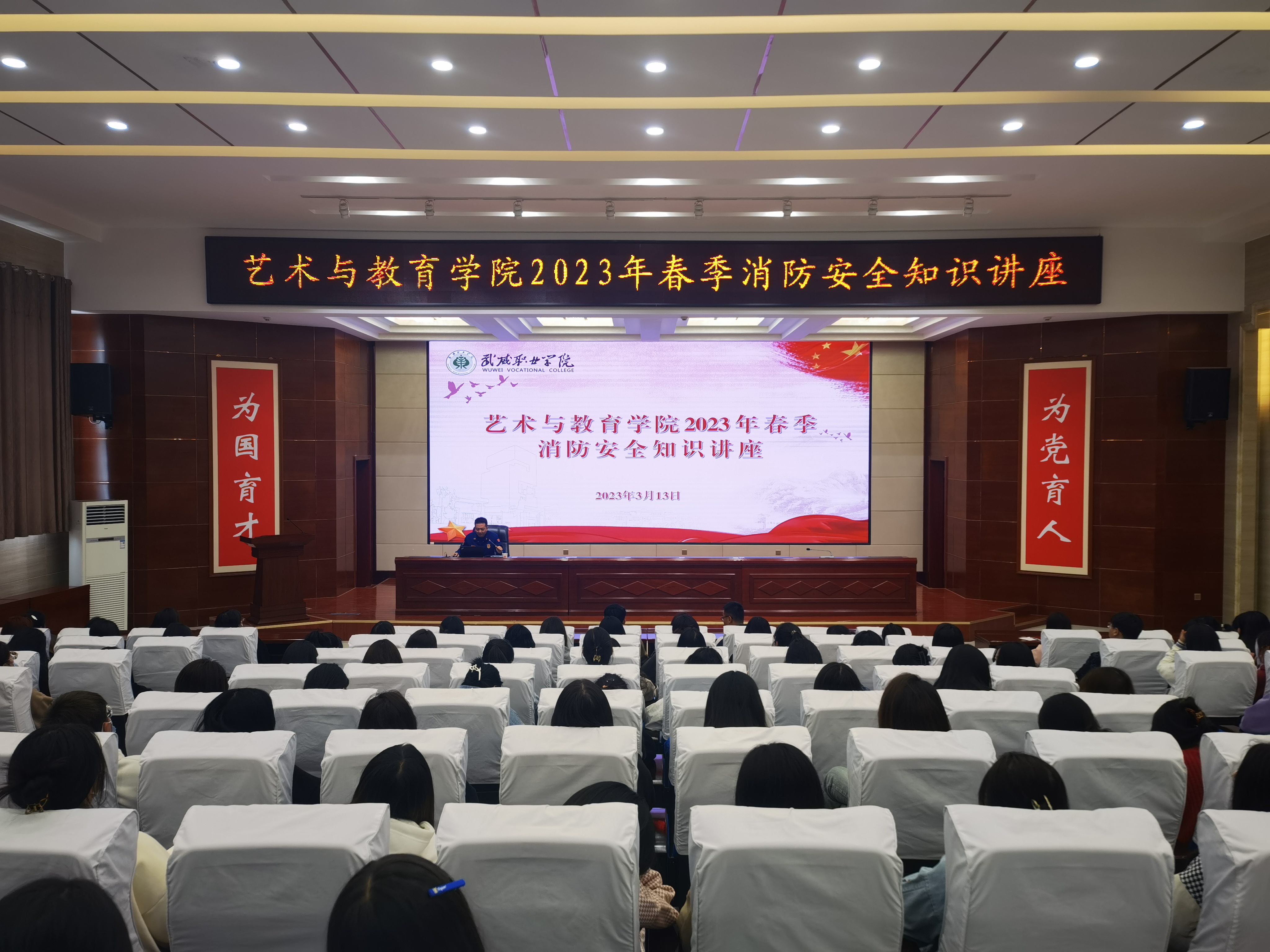 為進(jìn)一步加強(qiáng)我院師生消防安全意識(shí),提升自我應(yīng)變和防護(hù)能力。近日,藝術(shù)與教育學(xué)院在大學(xué)生發(fā)展中心菁英廳開展了消防安全知識(shí)講座。講座由武威市消防救援支隊(duì)涼都特勤站站長(zhǎng)武子奇主講,200多名師生參加講座。