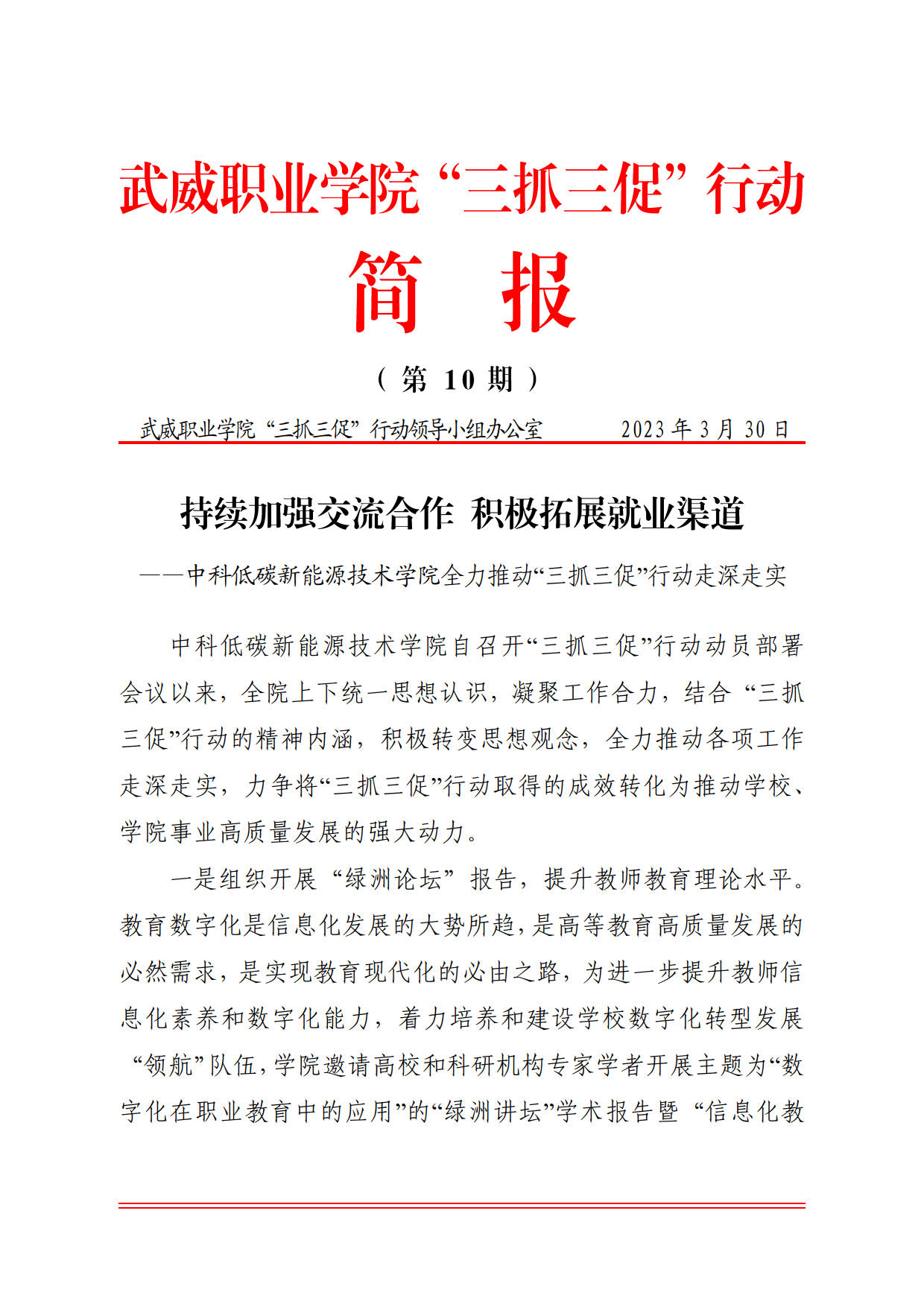 簡(jiǎn)報(bào)第10期:持續(xù)加強(qiáng)交流合作 積極拓展就業(yè)渠道