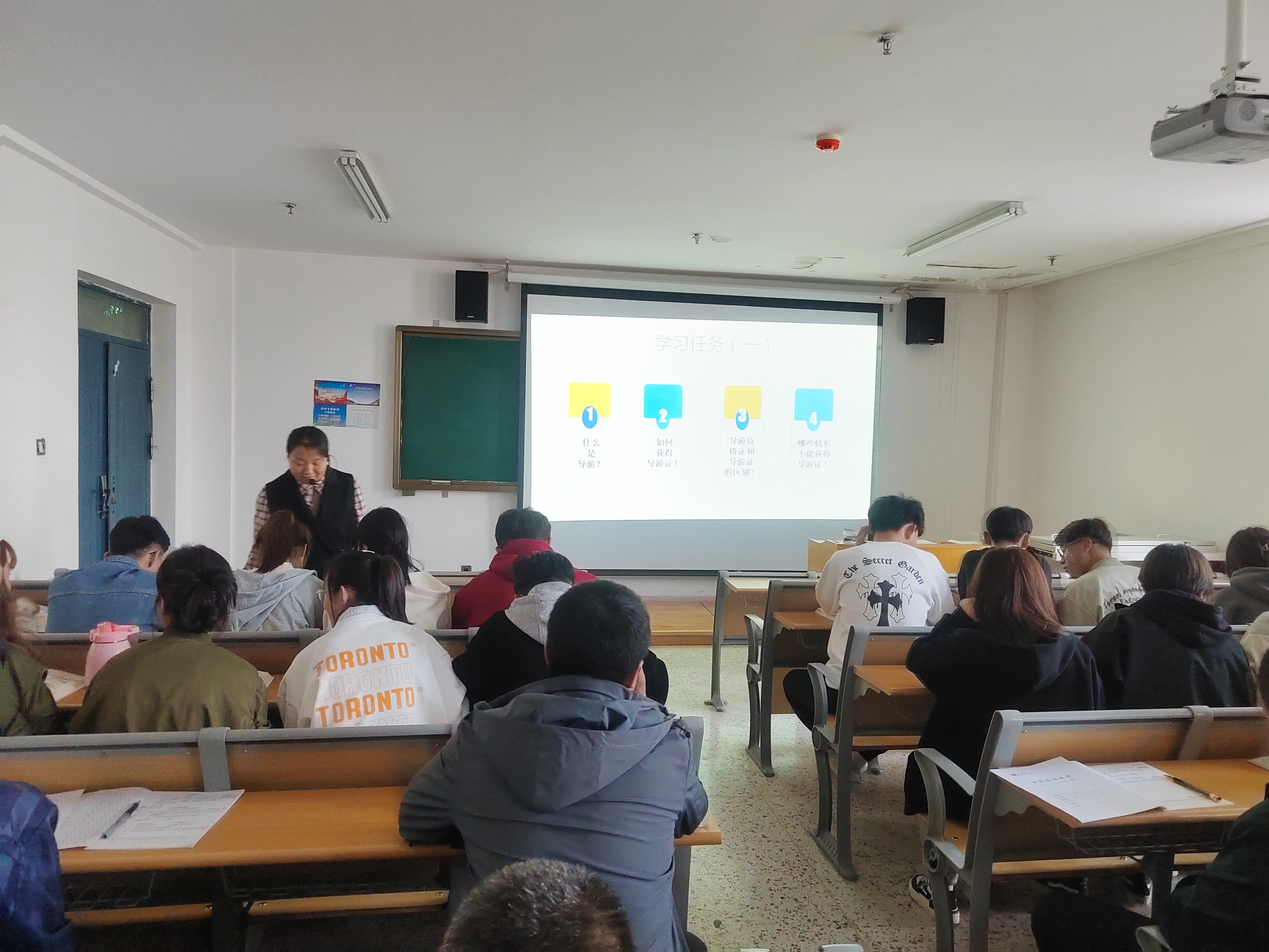 旅游教研室教師孔玉玲以《導(dǎo)游管理法律制度》為主題,帶領(lǐng)2022級(jí)旅游管理大專班學(xué)生為大家奉上了一堂精彩的研討課。整個(gè)過(guò)程在課程思政理念的指導(dǎo)下,以“某旅行社委派無(wú)證導(dǎo)游帶團(tuán)造成嚴(yán)重后果”引入課題,激發(fā)學(xué)生興趣,緊接著圍繞課程導(dǎo)入案例,采用講授法、討論法、任務(wù)驅(qū)動(dòng)法等多元化的教學(xué)方式,將課程教學(xué)內(nèi)容與思政元素?zé)o縫銜接,實(shí)現(xiàn)了顯性培育與隱性熏陶的完美融合,取得了良好的教學(xué)效果。