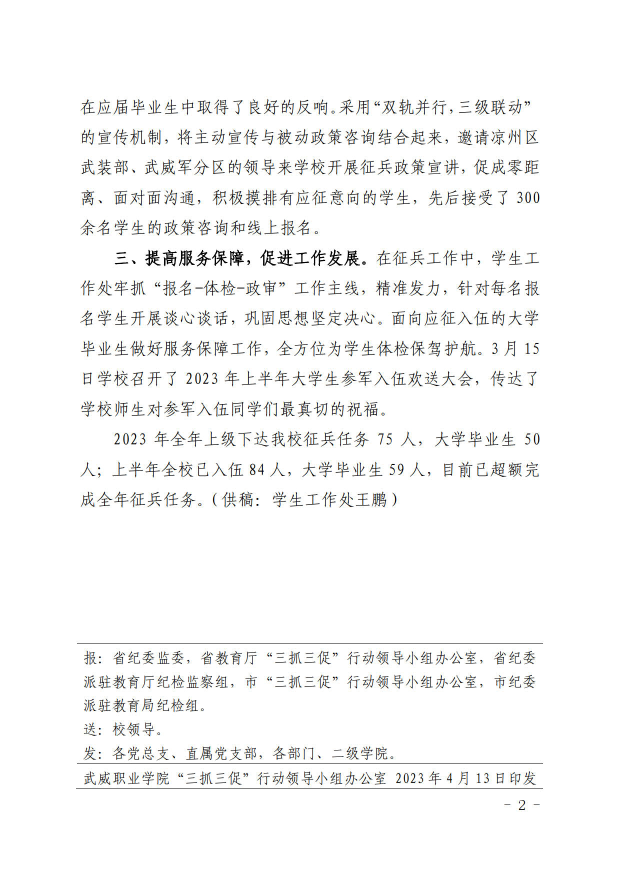 簡報第14期:抓執(zhí)行促落實 多措并舉見成效 學校2023年春季征兵任務超額完成
