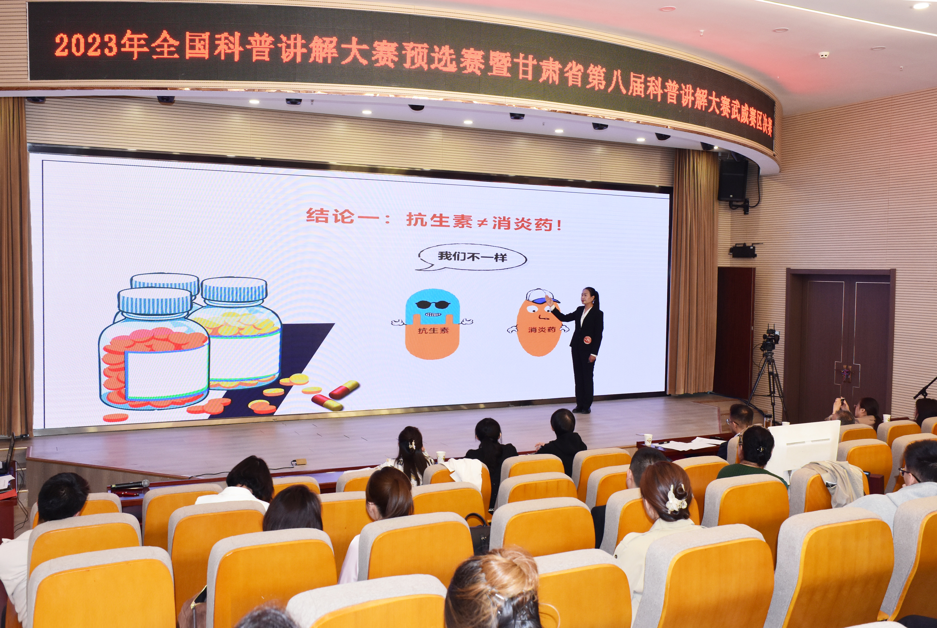 4月15日,決賽在武威市科技館舉行。來自全市三縣一區(qū)從事科技、醫(yī)療、教育等行業(yè)的25名選手通過自主命題講解視頻播放、情景演示等方式,圍繞自然、生態(tài)、天文科學、醫(yī)療健康等主題展開了精彩講解,為大家?guī)砹艘粓鰣鼍始姵实目破帐⒀纭?/p>