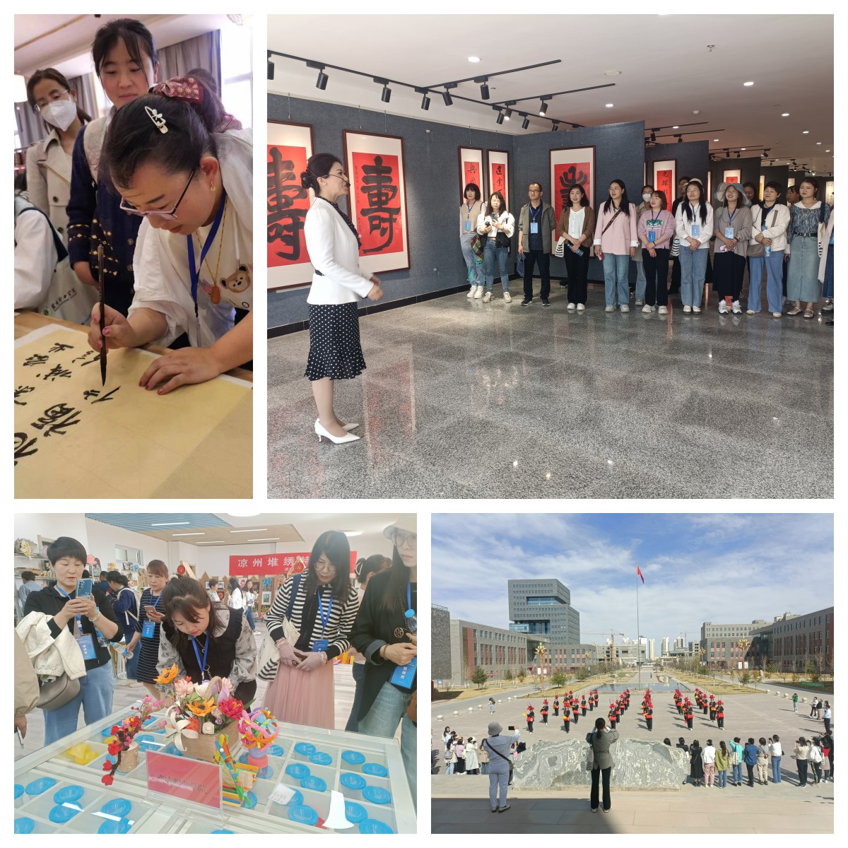 16日下午,培訓(xùn)班組織學(xué)員觀摩學(xué)校學(xué)前教育專業(yè)實(shí)訓(xùn)中心、紅色文化藝術(shù)館、傳統(tǒng)文化體驗(yàn)中心、非遺體驗(yàn)中心等場(chǎng)館。在講解老師的帶領(lǐng)下,學(xué)員們有感而發(fā),唱紅歌、彈鋼琴、練書法,使紅色教育理念在觀摩中得以升華,現(xiàn)場(chǎng)氣氛激情熱烈,學(xué)員們對(duì)學(xué)校的發(fā)展贊嘆不已,隨后,全體學(xué)員觀看涼州攻鼓子表演,并合影留念。