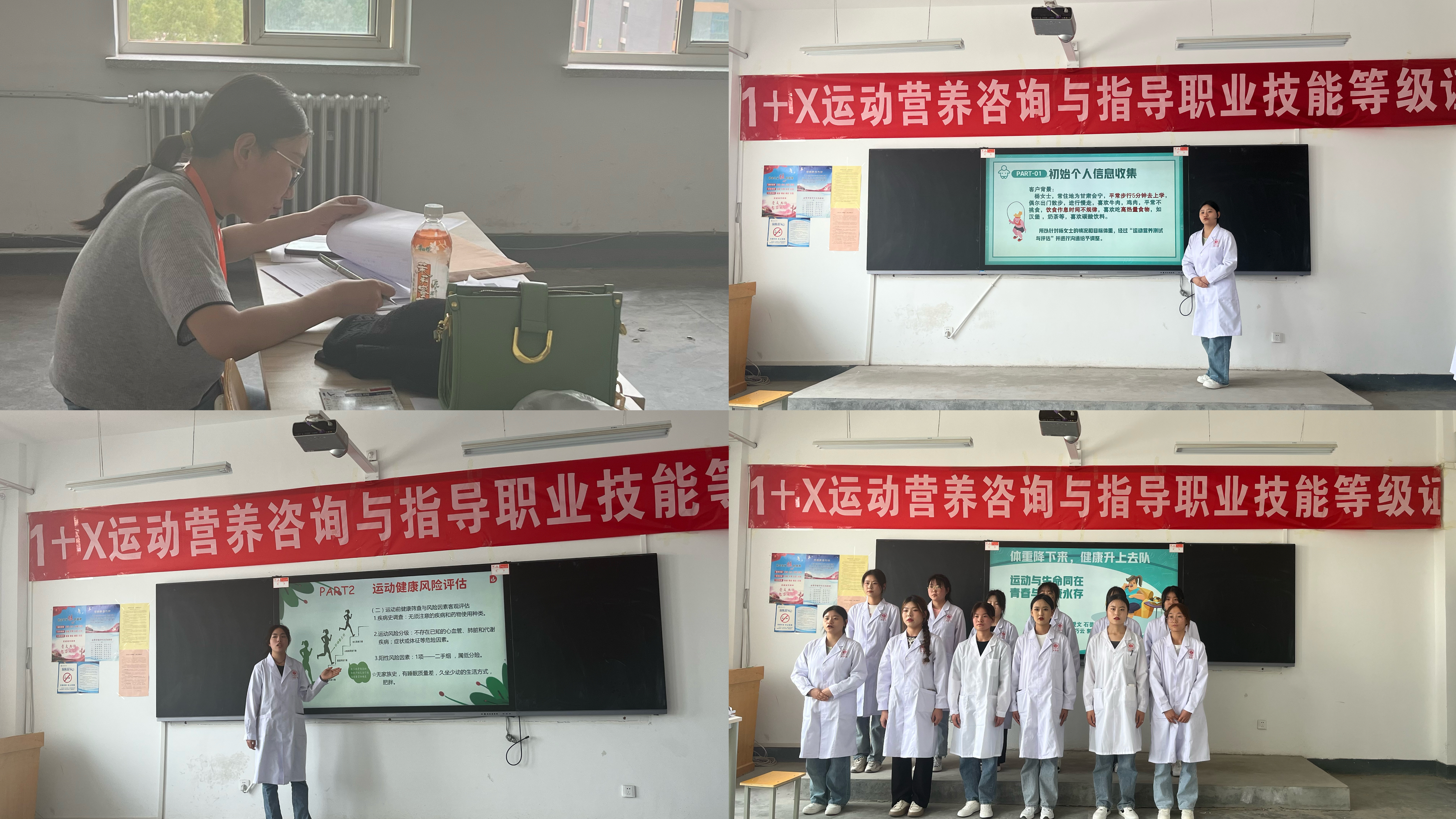 考試分為理論和實(shí)操兩部分。理論考試內(nèi)容依托《運(yùn)動(dòng)營養(yǎng)學(xué)》課程,涵蓋了運(yùn)動(dòng)風(fēng)險(xiǎn)評估、膳食調(diào)查、運(yùn)動(dòng)營養(yǎng)品的補(bǔ)充等多個(gè)領(lǐng)域知識;實(shí)操演練環(huán)節(jié)考核了運(yùn)動(dòng)營養(yǎng)方案的匯報(bào)和技能展示,全面檢驗(yàn)了學(xué)生在運(yùn)動(dòng)營養(yǎng)方面的理論和實(shí)踐水平。