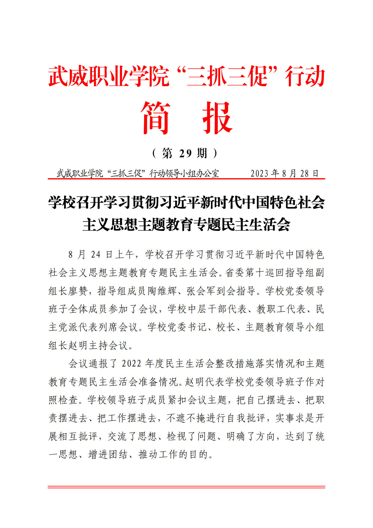 簡報第29期:學(xué)校召開學(xué)習(xí)貫徹習(xí)近平新時代中國特色社會主義思想主題教育專題民主生活會