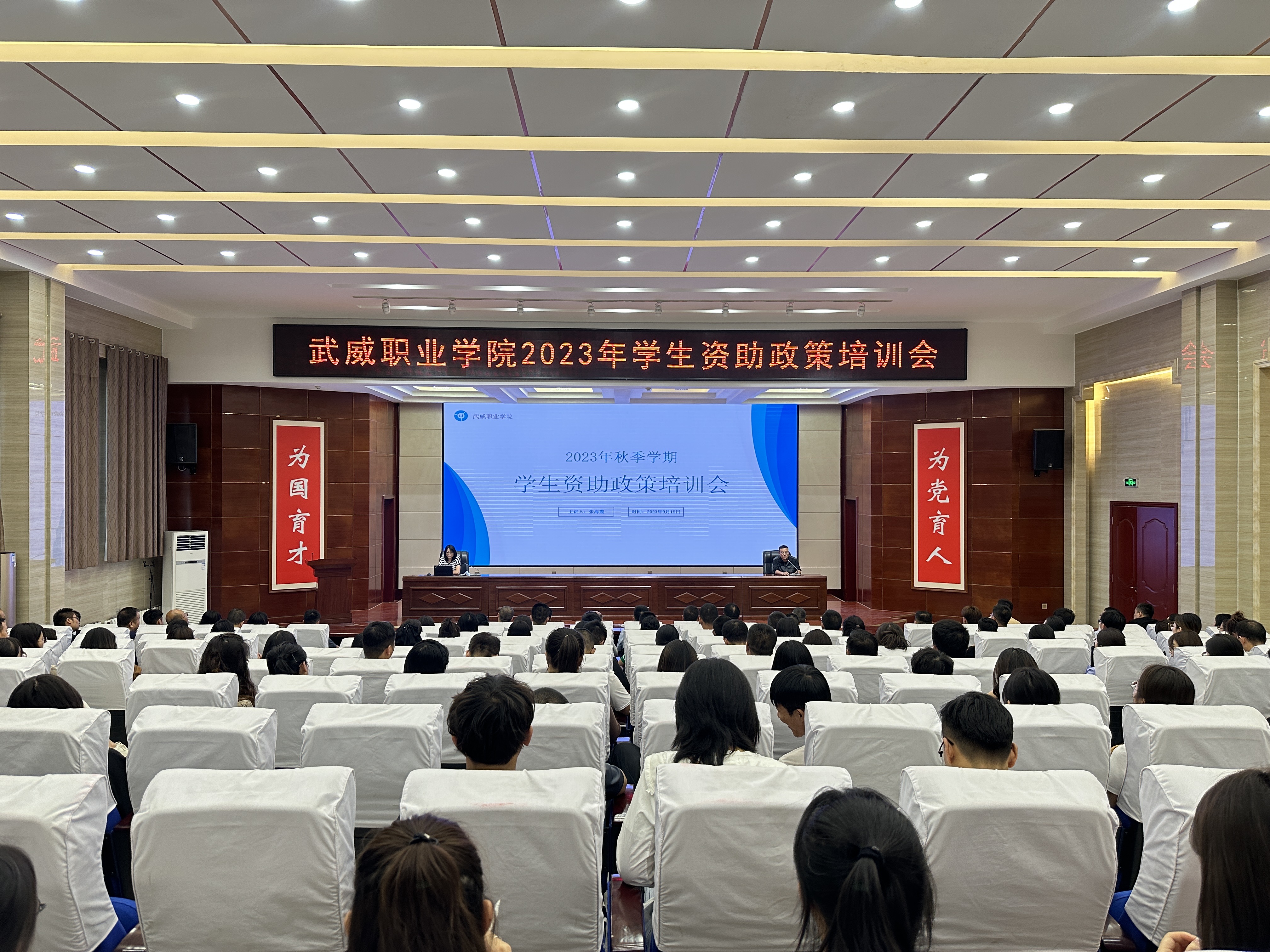 9月15日下午,學(xué)校學(xué)生資助管理中心在菁英廳舉辦2023年秋季學(xué)期學(xué)生資助工作培訓(xùn)會(huì),全體輔導(dǎo)員和班主任參加。