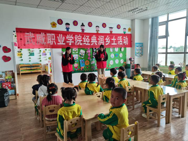 學(xué)校組織推普志愿團(tuán)隊(duì)學(xué)生赴古浪綠洲小鎮(zhèn)第一幼兒園開展了經(jīng)典浸潤?quán)l(xiāng)土特色幫扶活動(dòng),以經(jīng)典詩文、兒歌、紅歌等語言小游戲和幼兒進(jìn)行了互動(dòng),并發(fā)放文具等禮品,激發(fā)了小朋友同講普通話的興趣。
