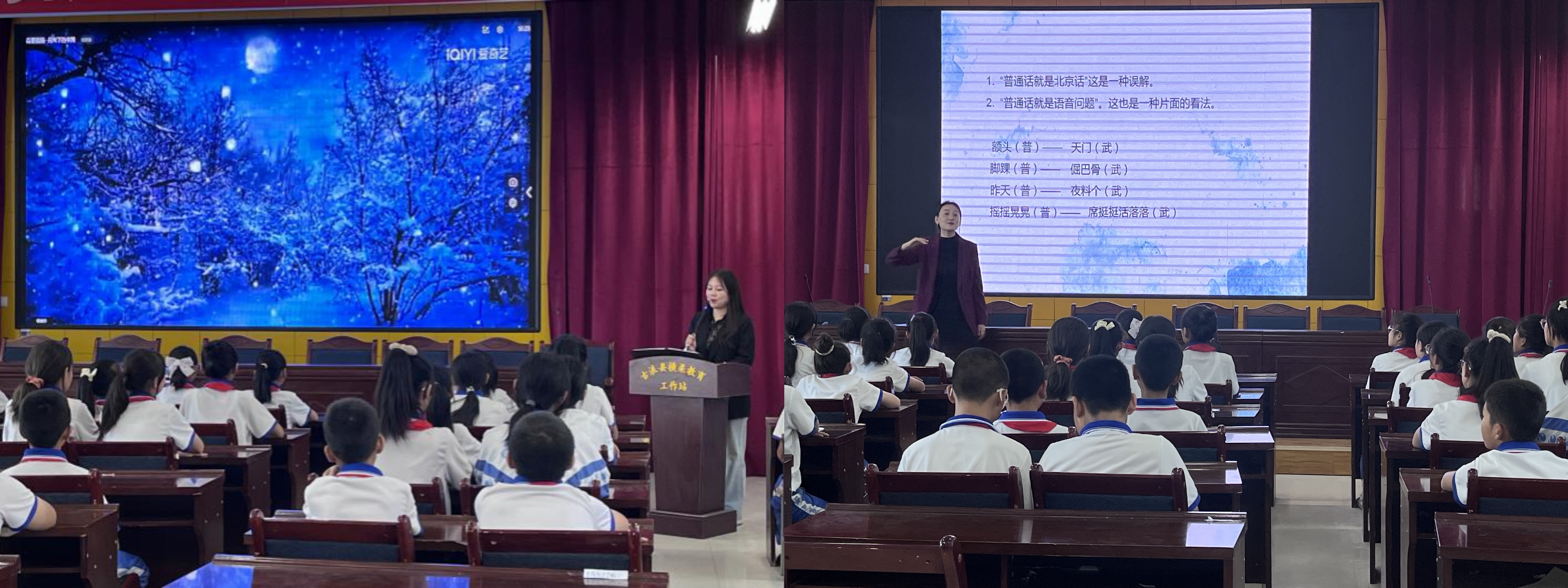 國家級普通話水平測試員開展了《學(xué)好普通話 方便你我他》培訓(xùn),向小學(xué)生講解了普通話的重要性、武威方言中常出現(xiàn)的語音錯(cuò)誤等內(nèi)容,激發(fā)了小學(xué)生學(xué)習(xí)普通話的熱情,增強(qiáng)了學(xué)生對祖國語言文字的熱愛之情,營造了積極向上、健康文明的校園文化氛圍。