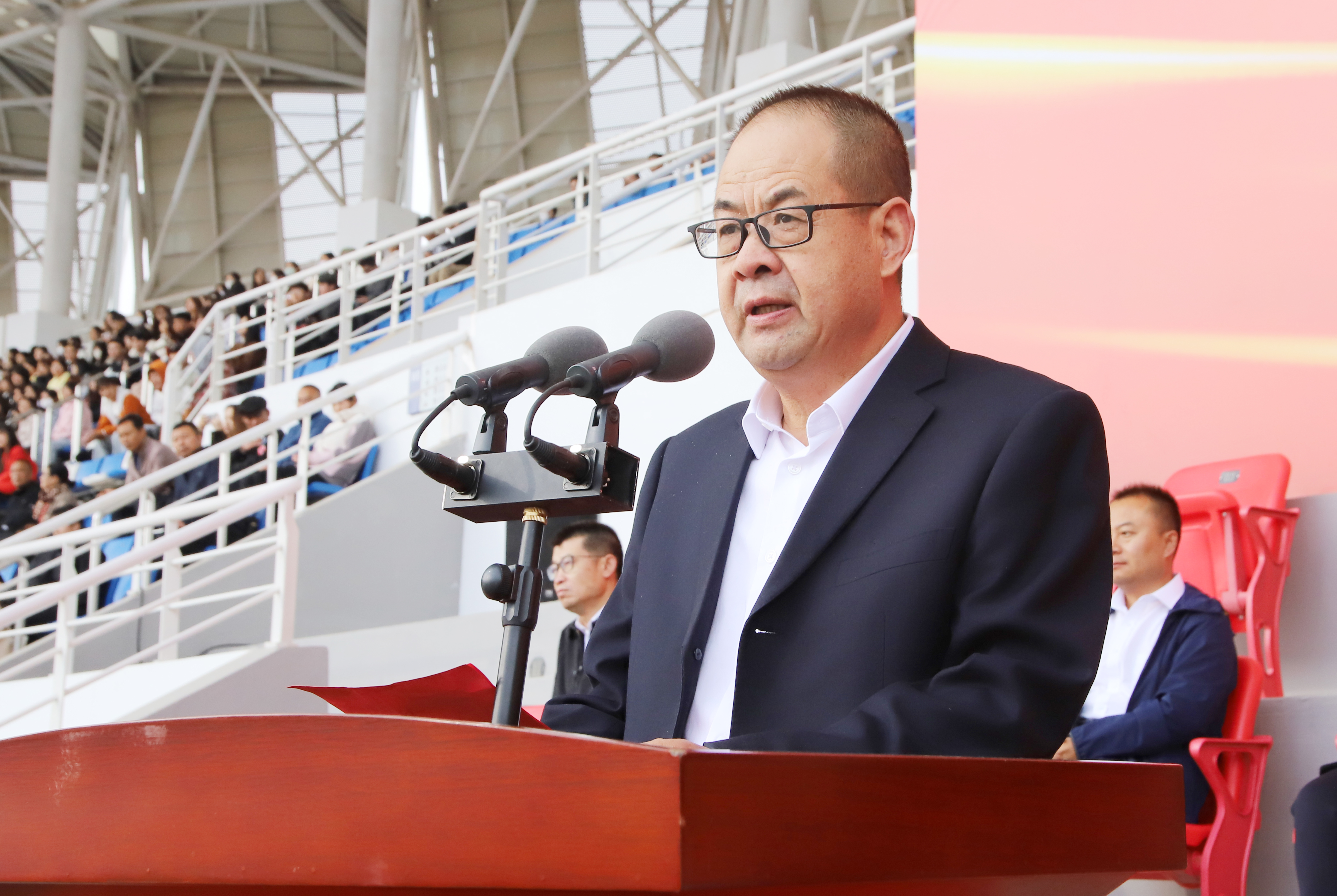 翟存祥致開幕辭,對運(yùn)動會的召開表示熱烈的祝賀,向全體運(yùn)動員、裁判員、教練員致以親切的問候,向精心籌備賽會的師生表示衷心的感謝。翟存祥表示,體育是國家教育事業(yè)的重要組成部分,作為新時代青年,更應(yīng)該具備合格的素質(zhì)、強(qiáng)健的體魄。他希望,全體師生要發(fā)揚(yáng)“更高、更快、更強(qiáng)、更團(tuán)結(jié)”的奧林匹克精神,堅(jiān)持體育鍛煉,練就強(qiáng)健體魄,讓體育運(yùn)動成為一種習(xí)慣,在運(yùn)動中感受快樂,收獲健康,享受幸福生活。他希望通過運(yùn)動會的舉辦,在全校形成熱愛體育運(yùn)動、弘揚(yáng)體育精神的濃厚氛圍,以飽滿的熱情、頑強(qiáng)拼搏的精神和務(wù)實(shí)的作風(fēng),奮力譜寫學(xué)校高質(zhì)量發(fā)展的嶄新篇章。