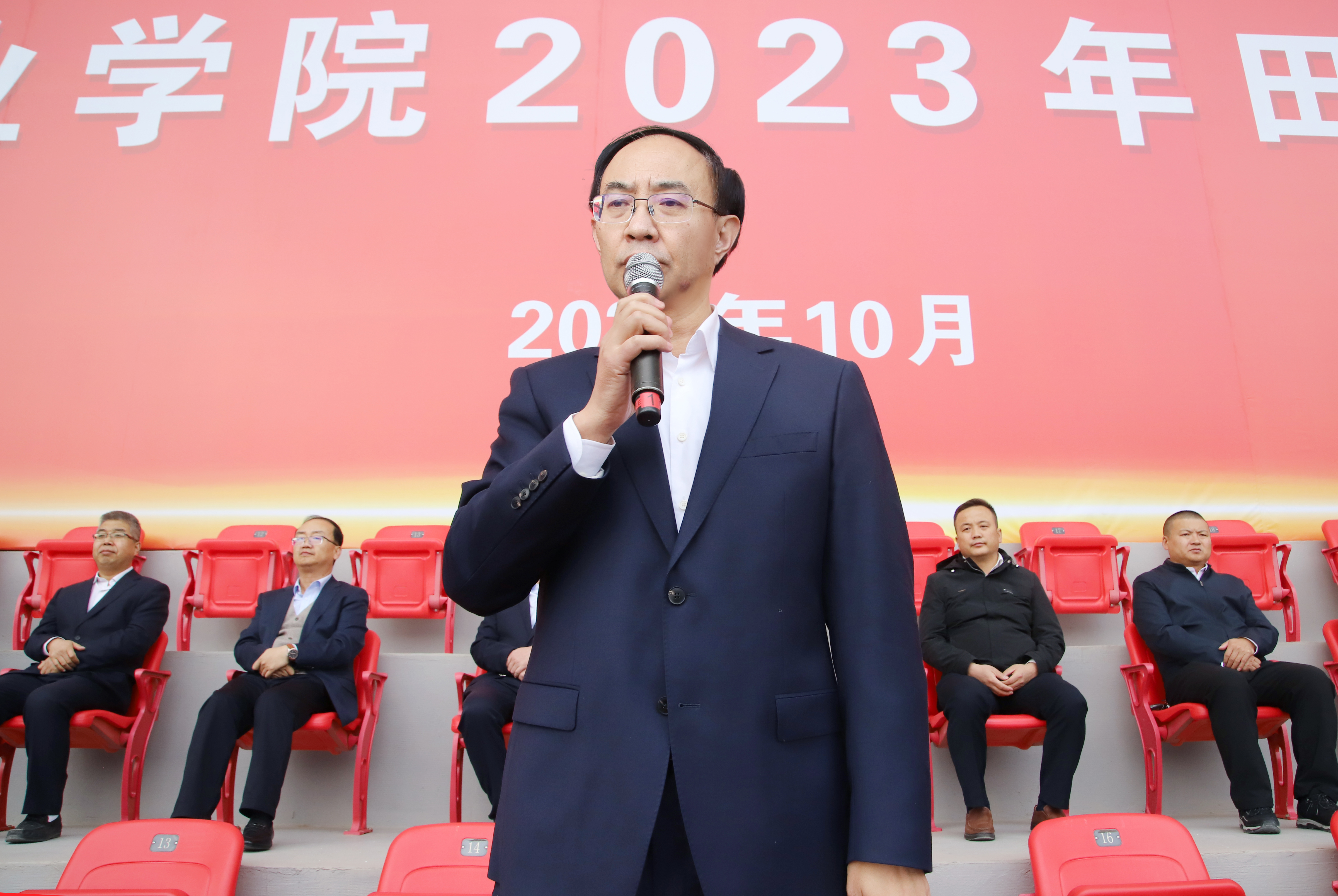 王宏宣布武威職業(yè)學(xué)院2023年田徑運(yùn)動會開幕。