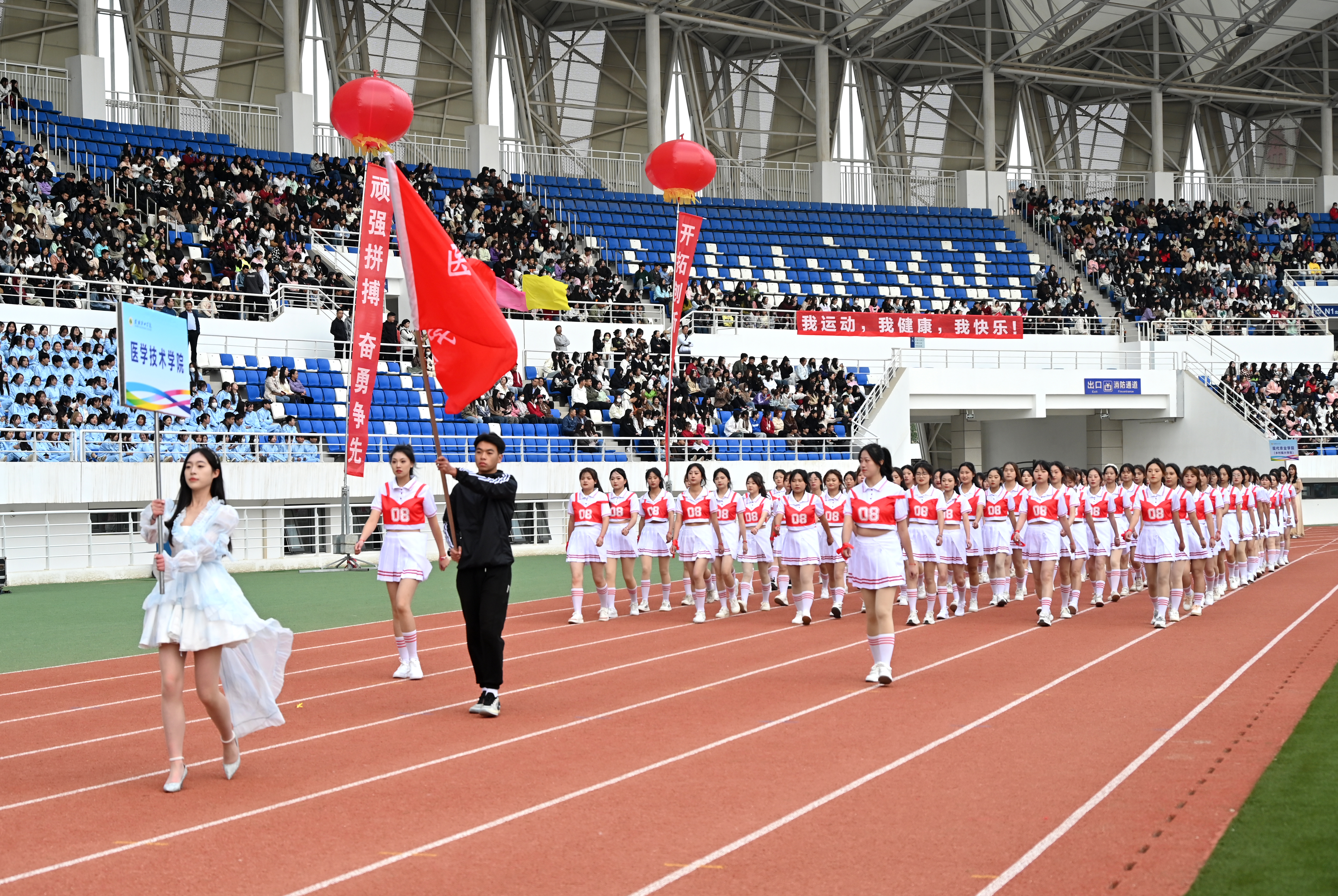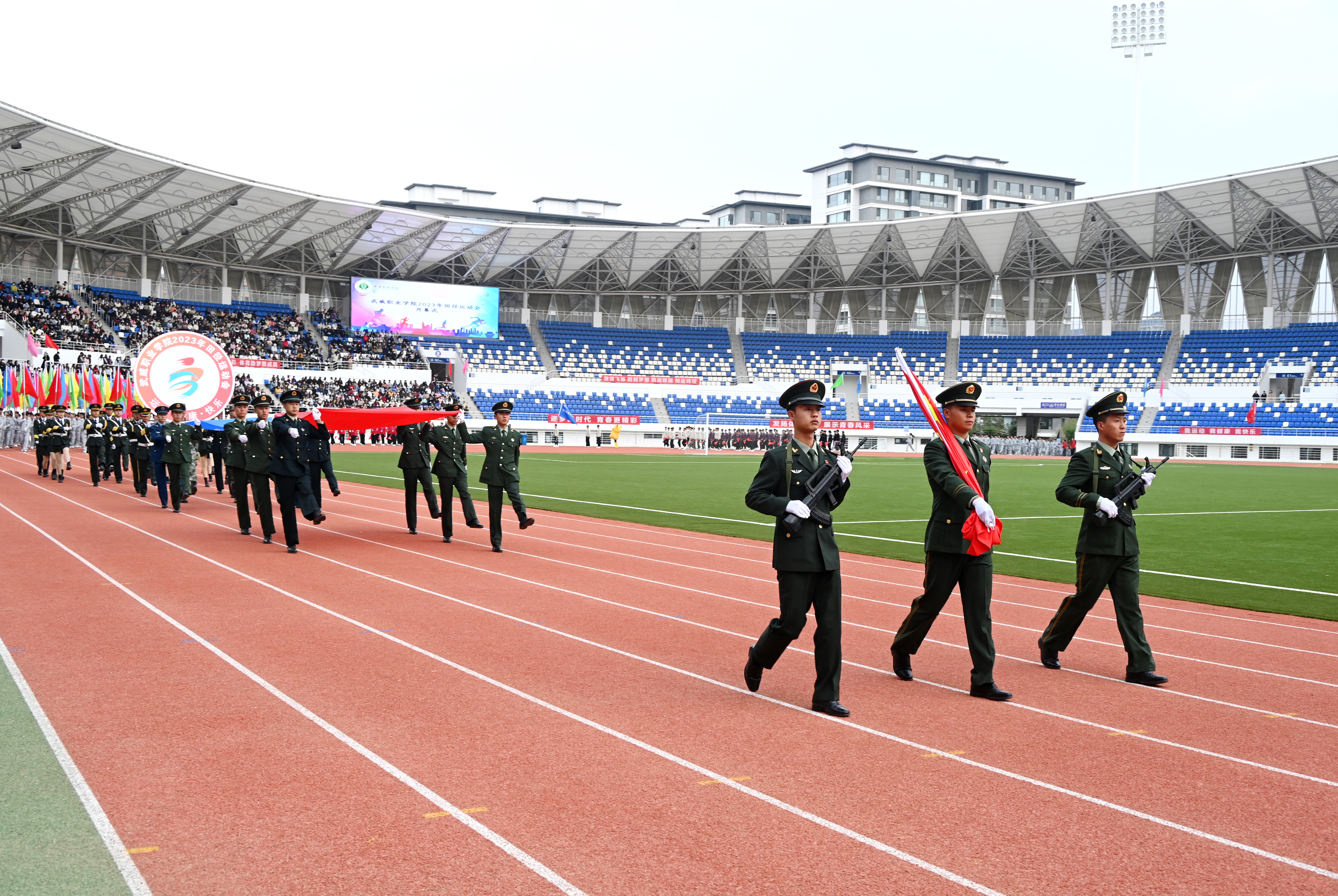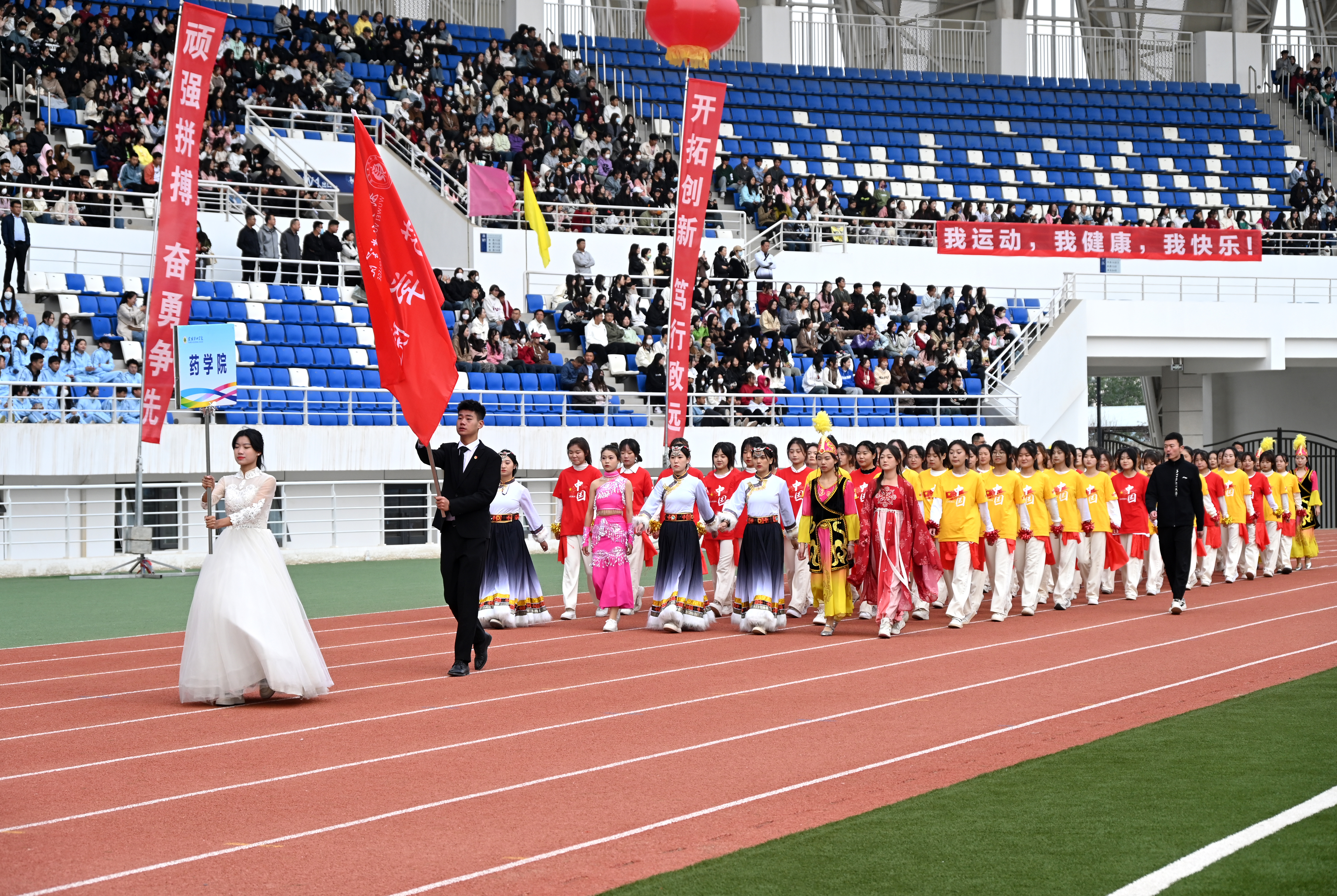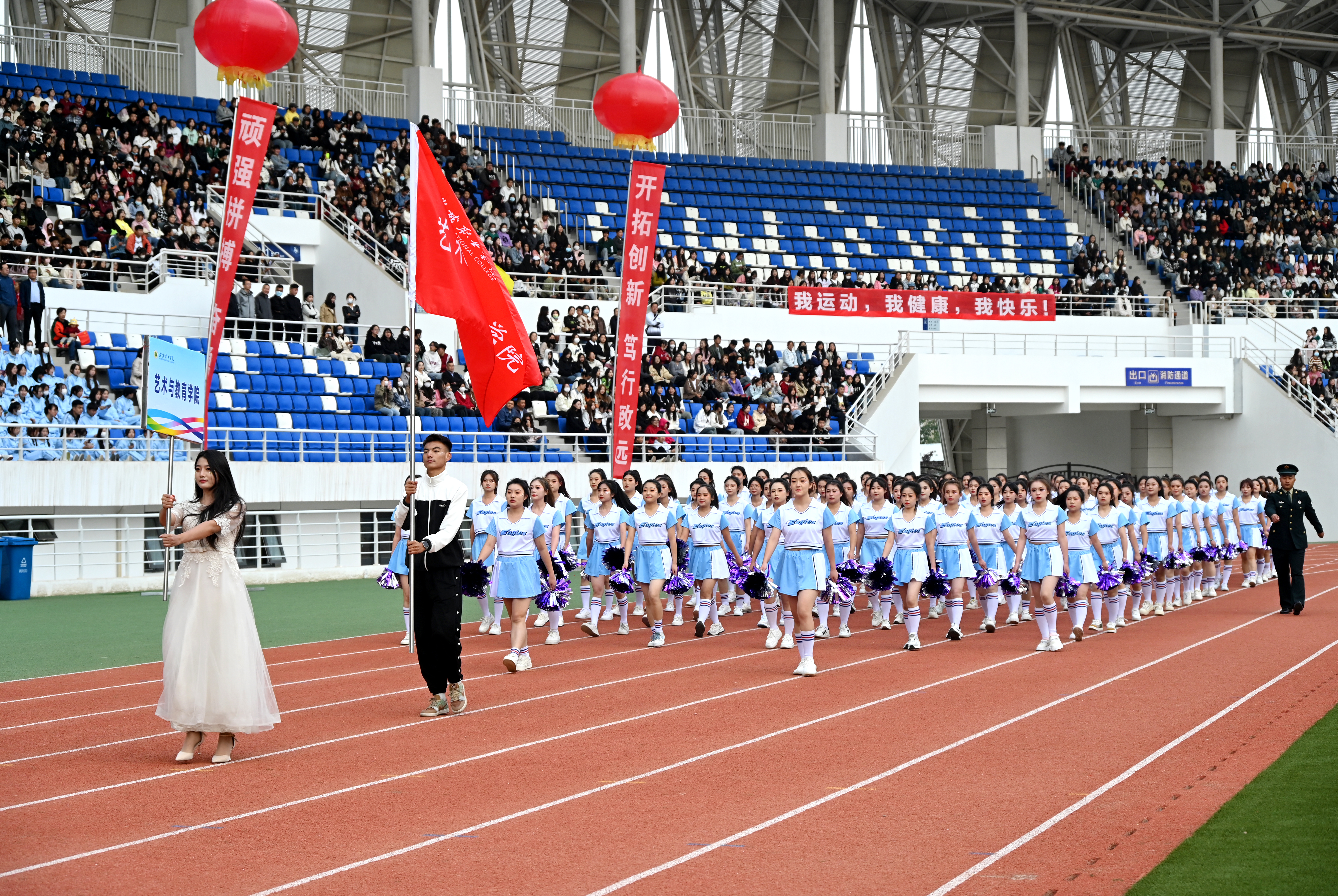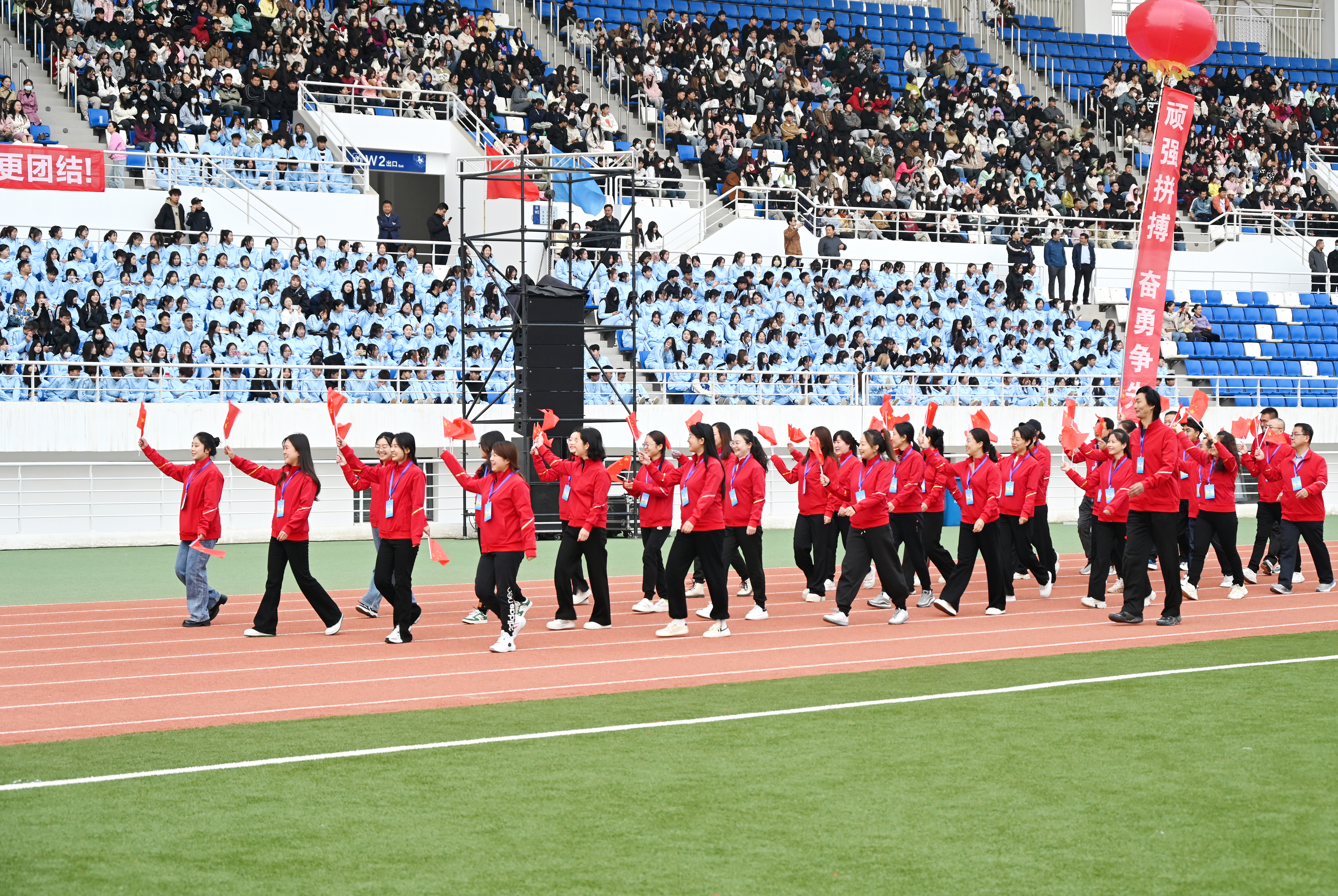 伴隨著雄壯激越的運(yùn)動員進(jìn)行曲,國旗護(hù)衛(wèi)隊(duì)、彩旗隊(duì)、裁判員隊(duì)伍、各二級學(xué)院方陣依次入場,隊(duì)列步伐整齊有力,口號堅(jiān)定嘹亮,充分展示了師生良好的精神風(fēng)貌。