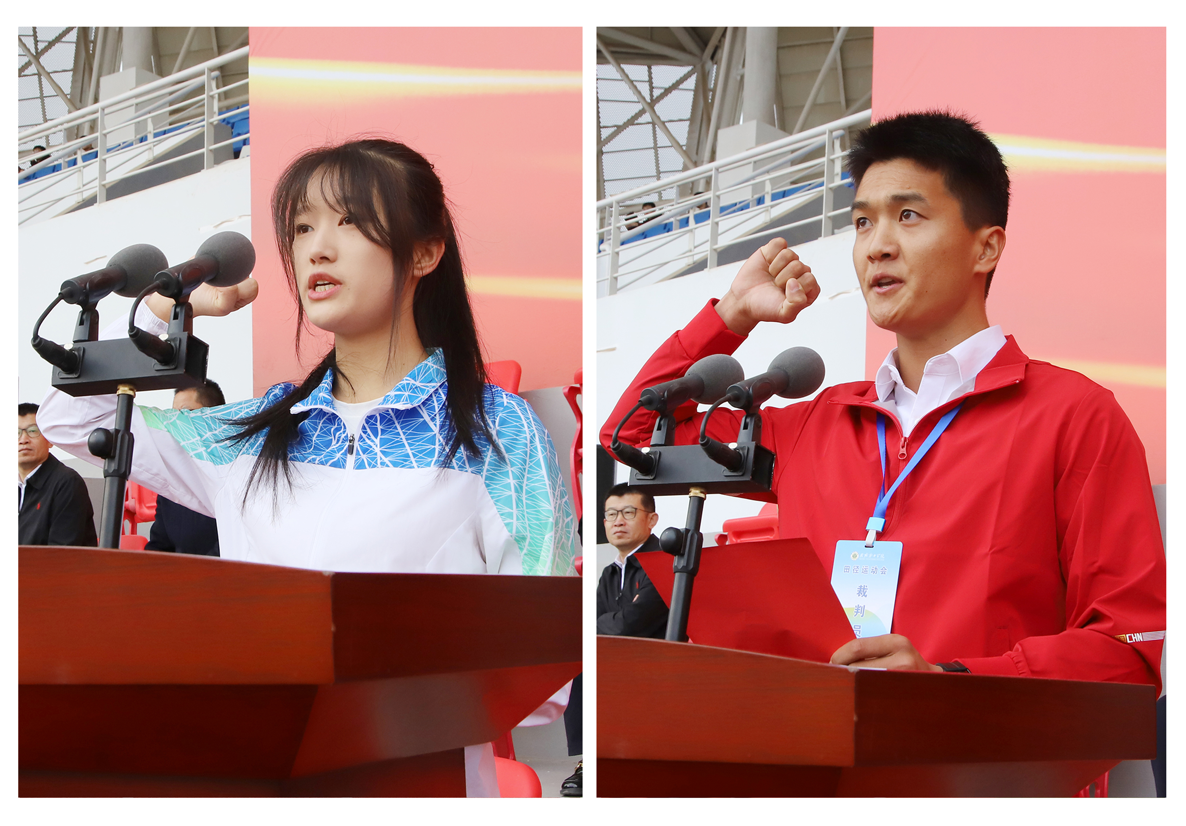 開幕式上,侯昊燁同學(xué)和吳績?nèi)鹄蠋煼謩e代表運(yùn)動員和裁判員進(jìn)行了莊嚴(yán)的宣誓。