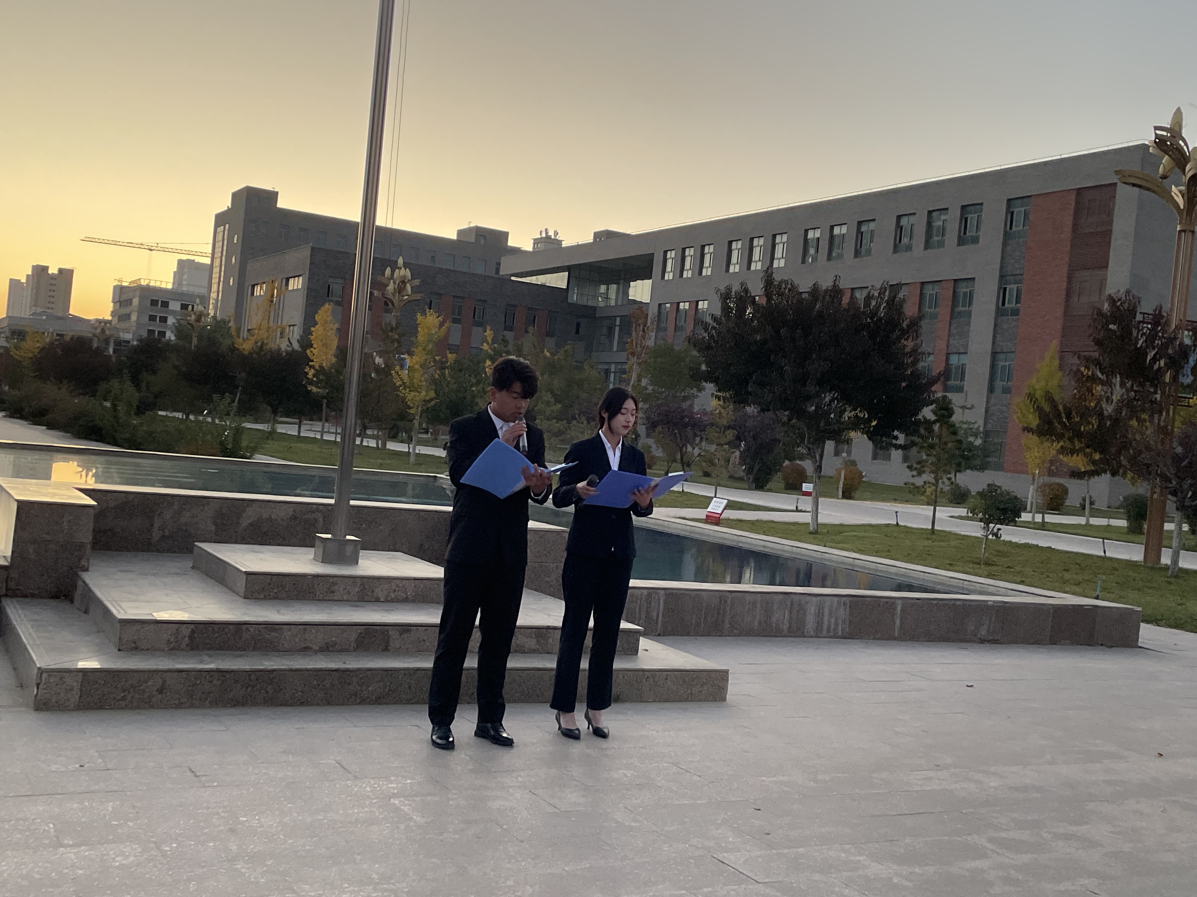 學(xué)院學(xué)生代表張永儒、吳瑋就“明德解行立志,鑄就無悔青春”進行國旗下的主題演講。生逢盛世,當不負盛世,他們號召全體學(xué)子不忘初心,牢記使命,樹立“青春之我”的奮斗之姿,扛起“強國有我”的青春之責,處在百年未有之大變局中,應(yīng)拼搏當下,創(chuàng)造屬于自己的精彩人生。