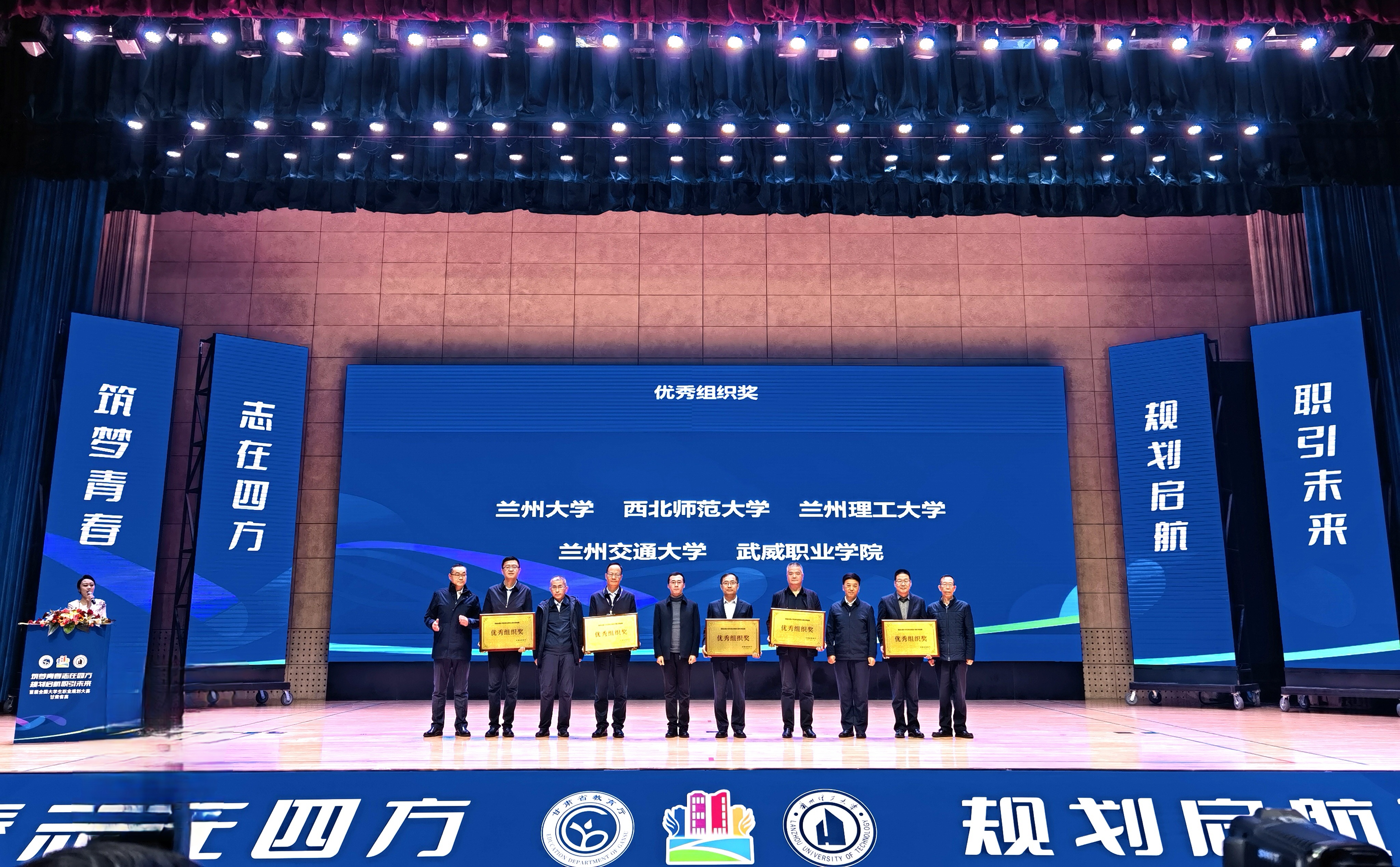 11月17日上午,“筑夢青春志在四方,規(guī)劃啟航職引未來”—首屆全國大學(xué)生職業(yè)規(guī)劃大賽甘肅省賽閉幕式暨頒獎(jiǎng)儀式在蘭州理工大學(xué)體育館舉行。我校黨委委員、副校長王守云,招生就業(yè)處負(fù)責(zé)人董鵬帶隊(duì)參加閉幕式暨頒獎(jiǎng)儀式。在職教組省級決賽中,兩個(gè)賽道分別設(shè)金獎(jiǎng)5項(xiàng),銀獎(jiǎng)10項(xiàng),銅獎(jiǎng)15項(xiàng)。我校代表隊(duì)榮獲金獎(jiǎng)2項(xiàng)、銀獎(jiǎng)4項(xiàng)、銅獎(jiǎng)4項(xiàng),獲獎(jiǎng)作品數(shù)目為全省第一。其中,經(jīng)濟(jì)管理學(xué)院2022級旅游管理專業(yè)學(xué)生顏汝榮獲成長賽道金獎(jiǎng)第一名,并在閉幕式上作匯報(bào)展演。