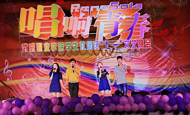 為紀(jì)念建黨95周年,6月22日晚,武威職業(yè)學(xué)院學(xué)生社團(tuán)在學(xué)院禮堂舉辦了慶“七一”文藝晚會(huì)。學(xué)院副院長(zhǎng)潘玉華,學(xué)生工作處、招生就業(yè)處、工會(huì)、院團(tuán)委負(fù)責(zé)人和800多名師生一同觀看了演出。