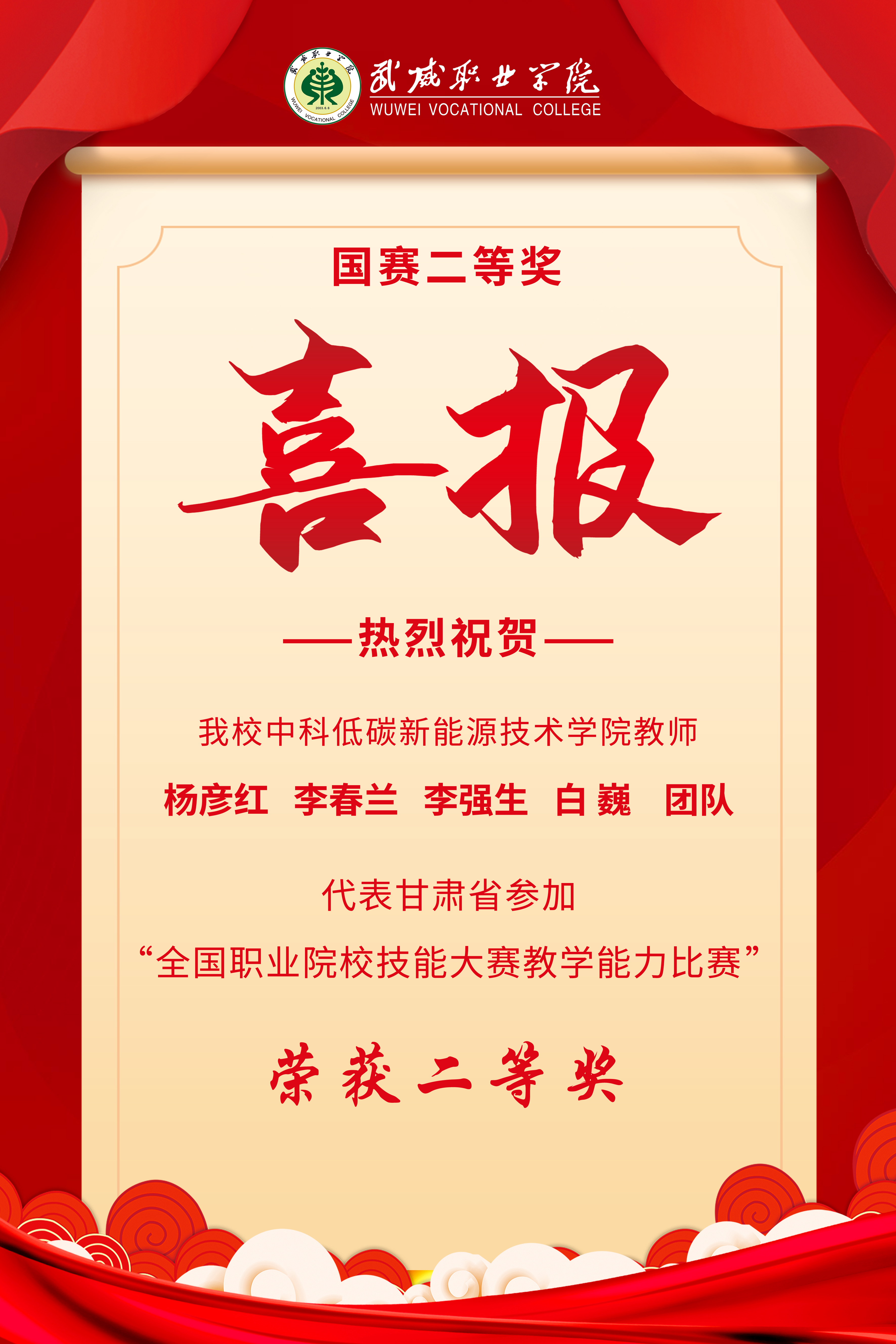 -- ——我校楊彥紅團(tuán)隊(duì)喜獲全國職業(yè)院校技能大賽教學(xué)能力比賽二等獎(jiǎng)