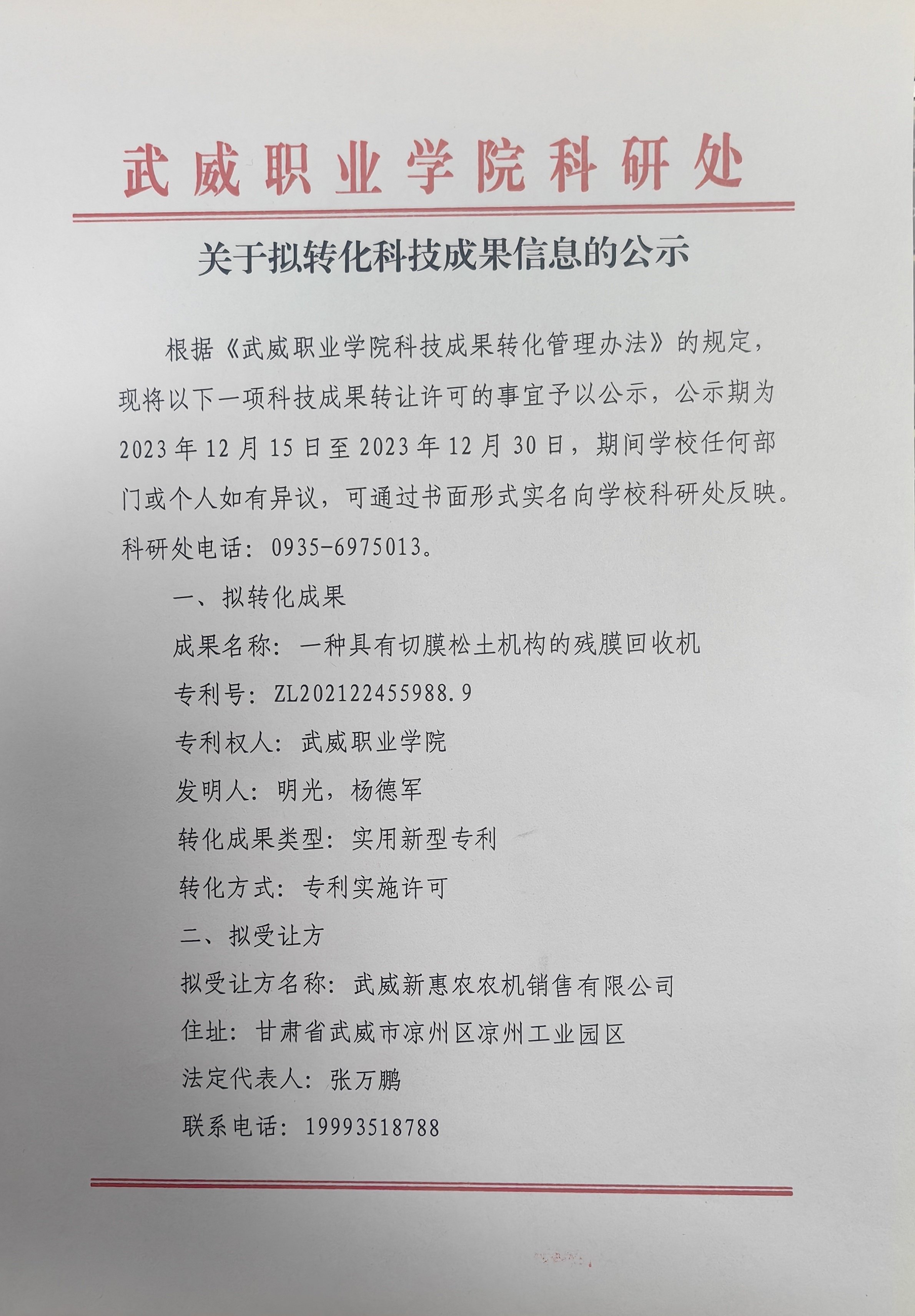 關(guān)于擬轉(zhuǎn)化科技成果信息的公示