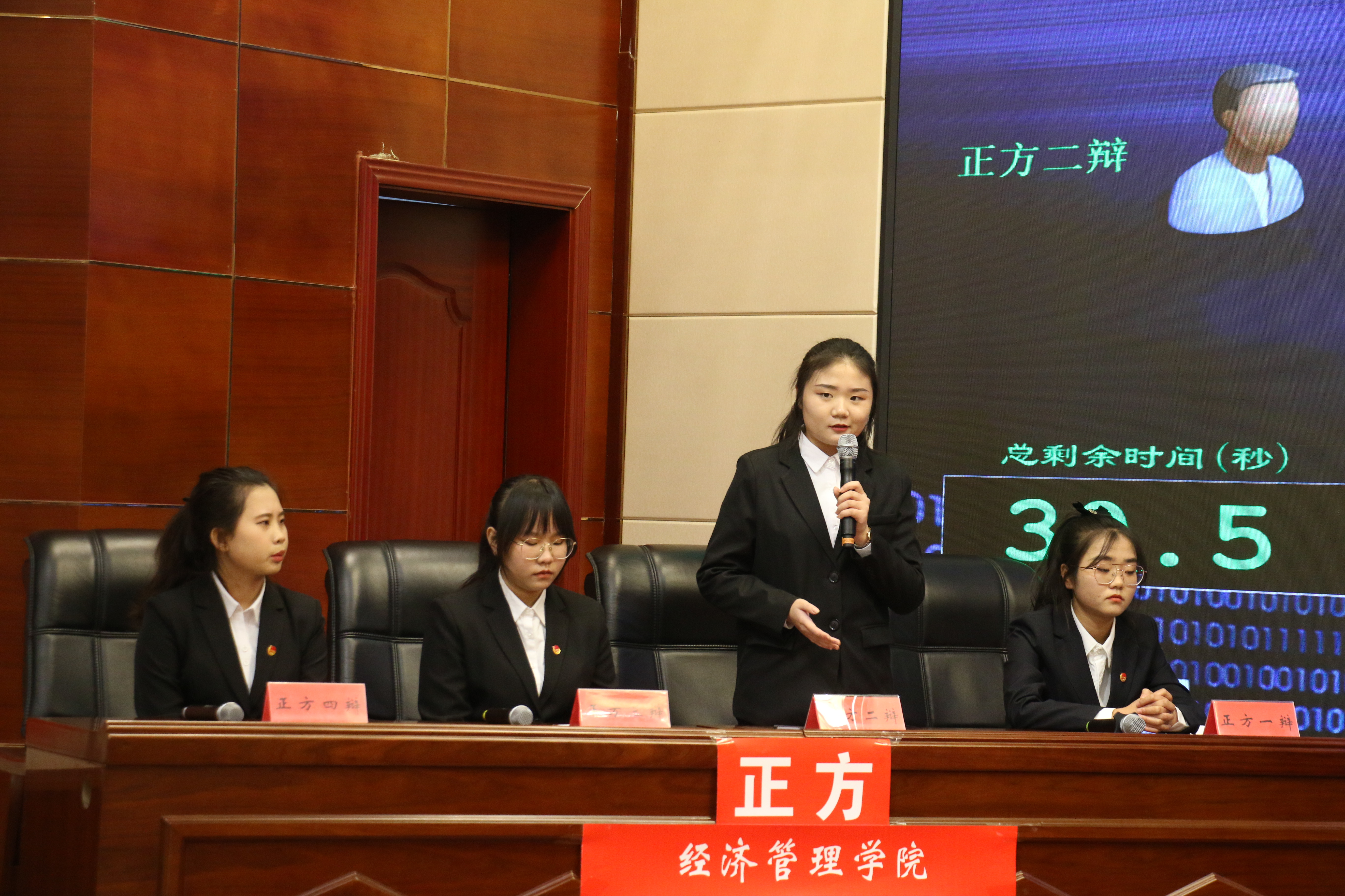本屆辯論賽圍繞青年成長成才、社會熱點主題展開,共有來自不同學院的9支隊伍參與角逐,自11月啟動以來共進行了12場比賽。在決賽現(xiàn)場,正反雙方針對青年成才機遇大于能力還是能力大于機遇展開思辨,比賽過程中雙方辯手唇槍舌戰(zhàn)、妙語連珠、針鋒相對、精彩不停,一問一答間透出的是大學生理性思考的光輝,鏗鏘有力的話語展露的是青年的時代責任與使命。