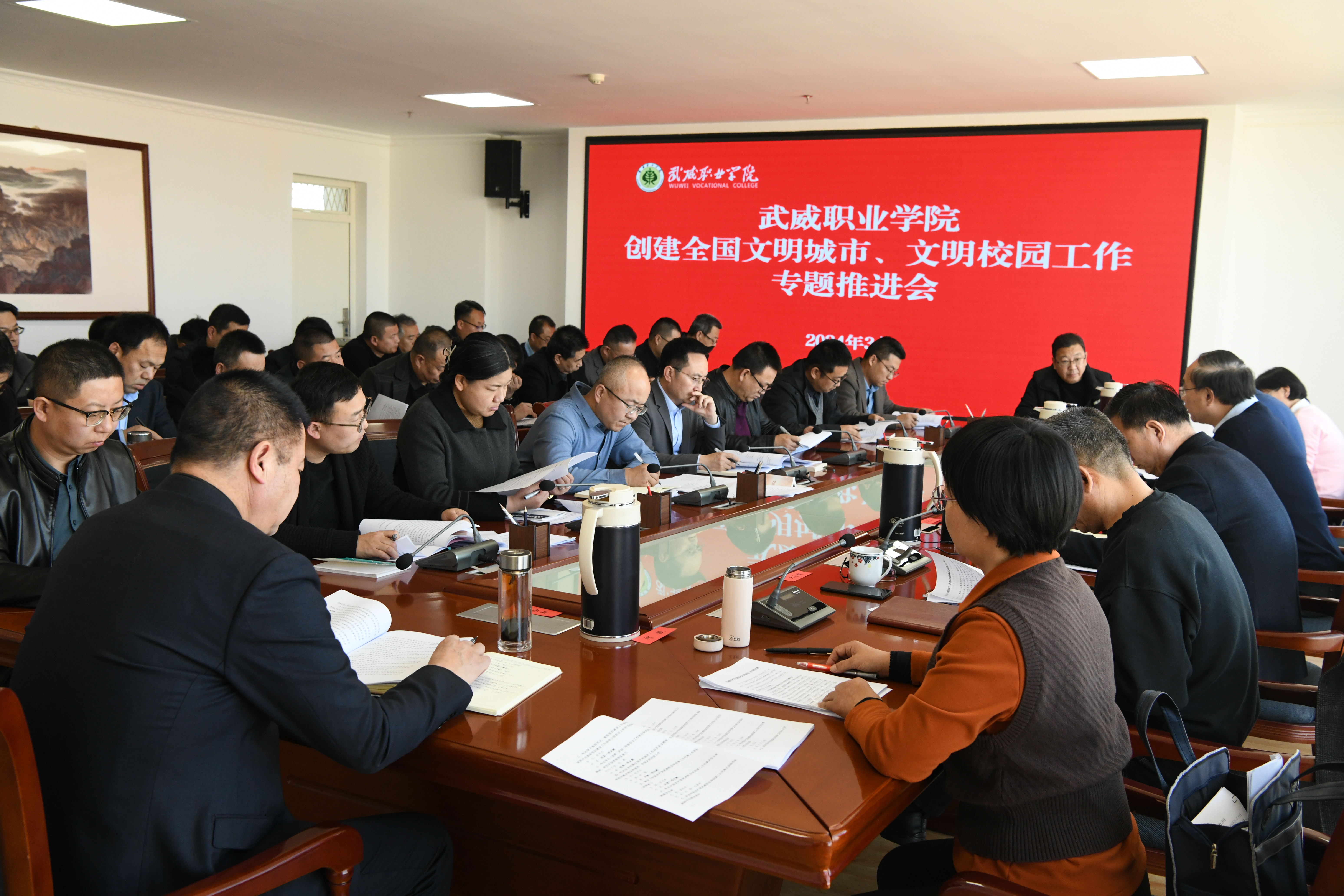 根據(jù)“武威市創(chuàng)建全國文明城市工作動員大會”精神,3月8日下午,學(xué)校在能源科技樓811會議室召開了2024年創(chuàng)建全國文明城市、文明校園專題工作推進(jìn)會。黨委書記王宏,校長、副書記張開禮,黨委副書記翟存祥,副校長王永緒、田迎春、何毅,紀(jì)委書記、監(jiān)察專員陳曉煜,副校長王守云出席會議,各黨總支、直屬黨支部書記,各部門、二級學(xué)院負(fù)責(zé)人參加會議。會議由黨委書記王宏主持并作了講話。
